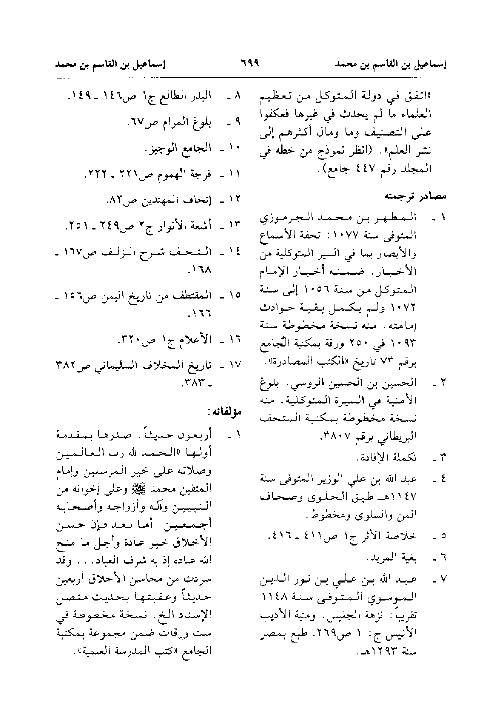 7. عبد الله بن علي بن نور الدين الموسوي المتوفى سنة 1148 تقريبا تزهة الجليس ومنية الأديب الأنيس ج:1 ص 269 طبع بمصر سنة 1293هـ.