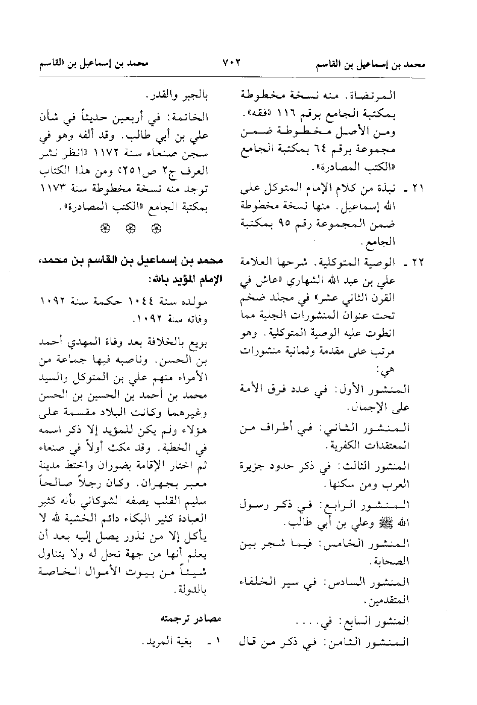 21. نبذة من كلام الإمام المتوكل على الله اسماعيل منها نسخة مخطوطة ضمن المجموعة رقم 95 بمكتبة الجامع.