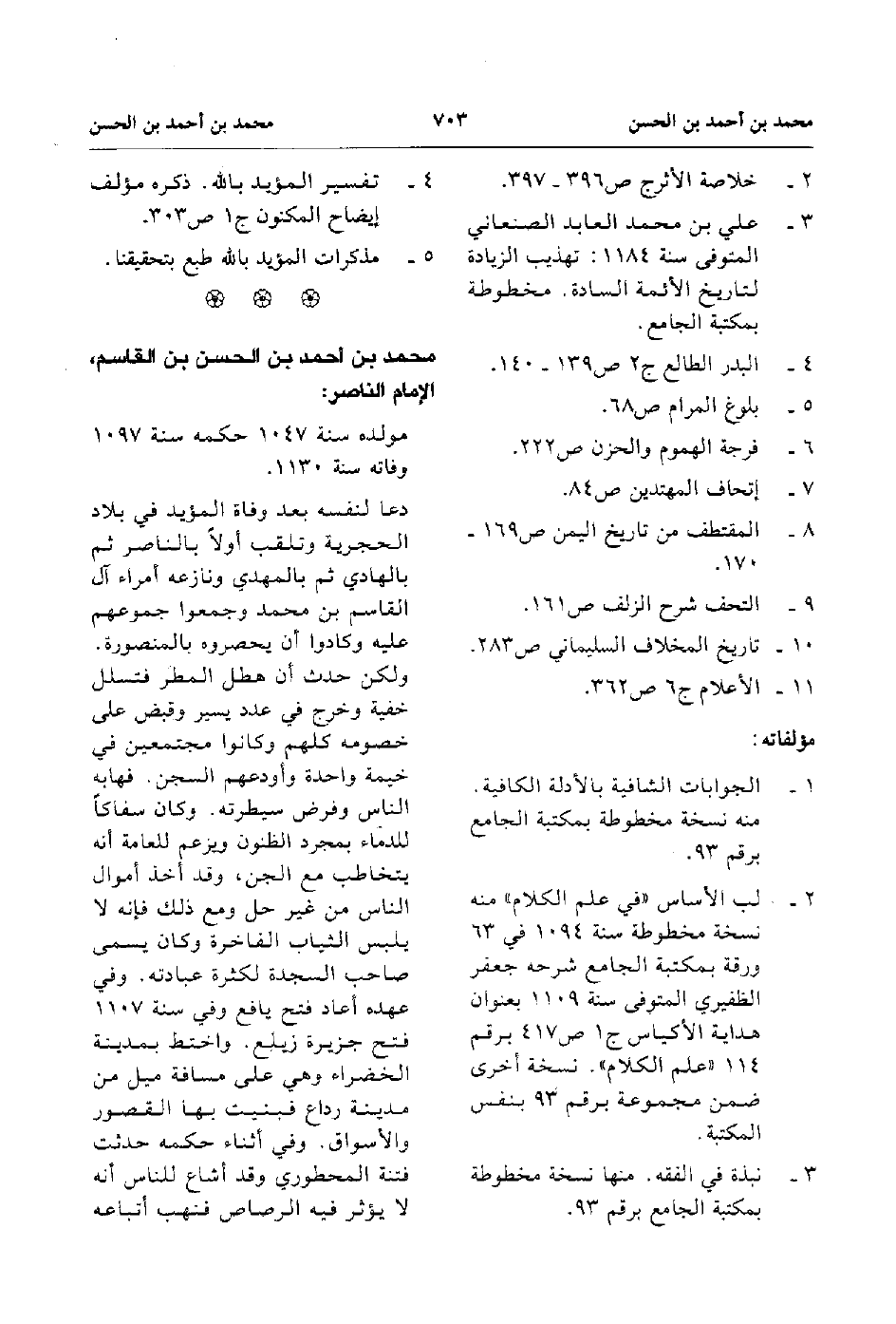 3. علي بن محمد العابد الصنعاني المتوفى سنة1184 تهذيب الزيادة لتاريخ الأئمة السادة مخطوطة بمكتبة الجامع.