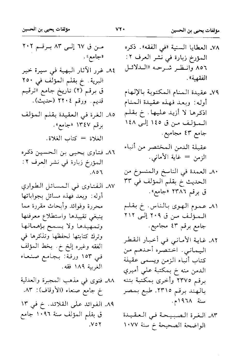 80. العمدة في الناسخ والمنسوخ من الحديث خ بقلم المؤلف في 33 ق برقم 2386 جامع.