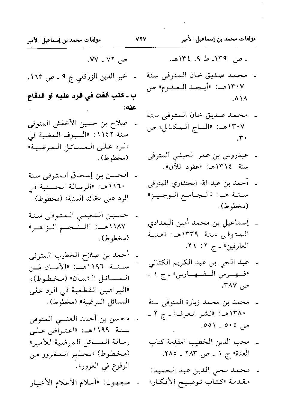 - محمد صديق خان المتوفى سنة 1307هـ ابجد العلوم ص 818.