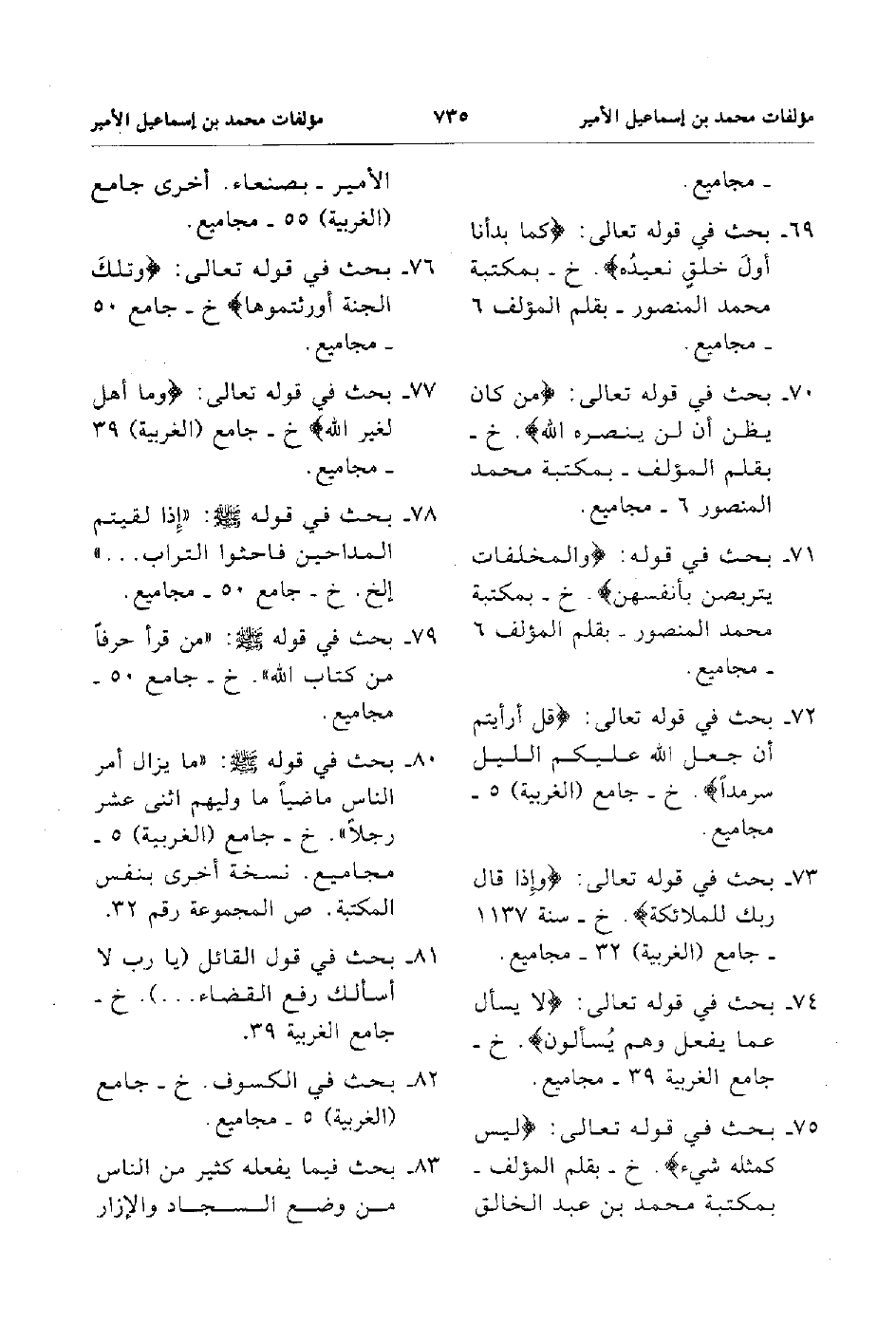 74. بحث في قوله تعالى ليس كمثله شئ خ بقلم المؤلف بمكتبة محمد بن عبد الخالق الأمير بصنعاء أخري جامع الغربية 55 مجاميع.