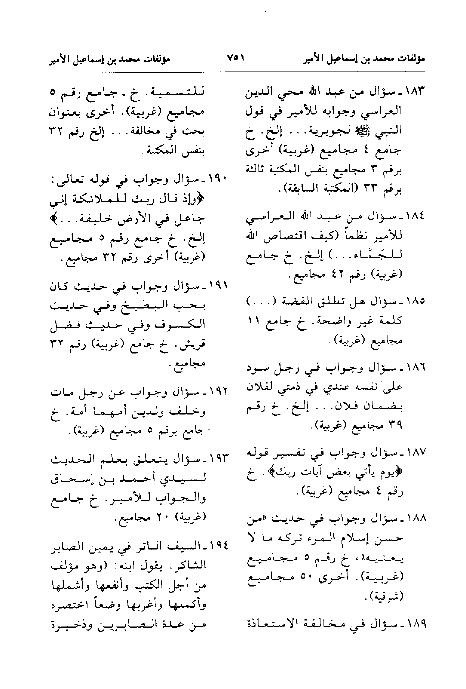 183.سؤال من عبد الله محي الدين العراسي وجوابه للأمير في قول النبي صلي الله عليه وسلم لجويرية الخ خ جامع 4 مجاميع غربية أخري برقم 3 مجاميع بنفس المكتبة ثالثة برقم 33 المكتبة السابقة.