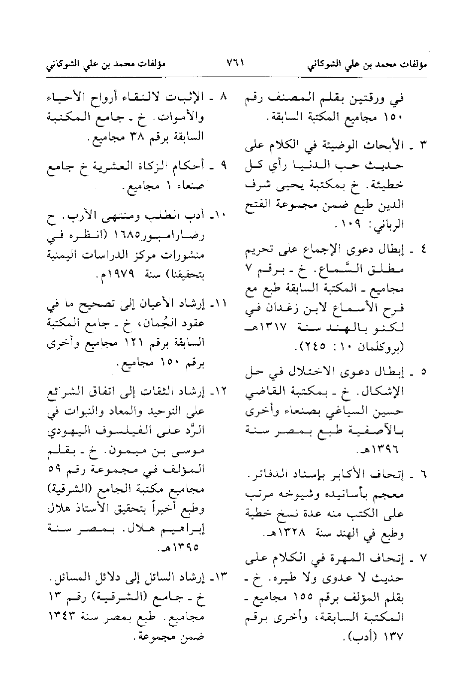 13. إرشاد السائل إلى دلائل المسائل خ جامع الشرقية رقم 13 مجاميع طبع مصر سنة 1343 ضمن مجموعة.