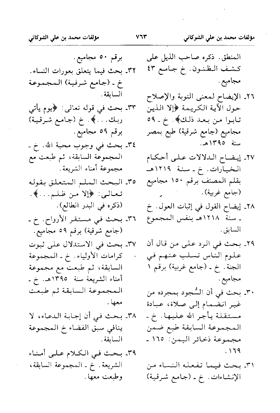 37. بحث في الاستلال على ثبوت كرامات الأولياء خ المجموعة السابقة ثم طبعت مع مجموعة أمناء الشريعة سنة 1395 هـ خ المجموعة السابقة ثم طبعت معها.
