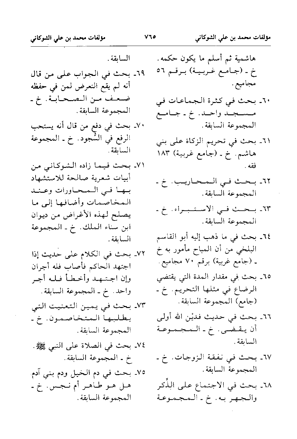 71. بحث فما زاده الشوكاني من أيات شرعية صالحة للاستشهاد بها في المحاورات وعند المخاصمات وأضافها إلى ما يصلح لهذه الأغراض من ديوان ابن سناء الملك خ المجموعة السابقة .