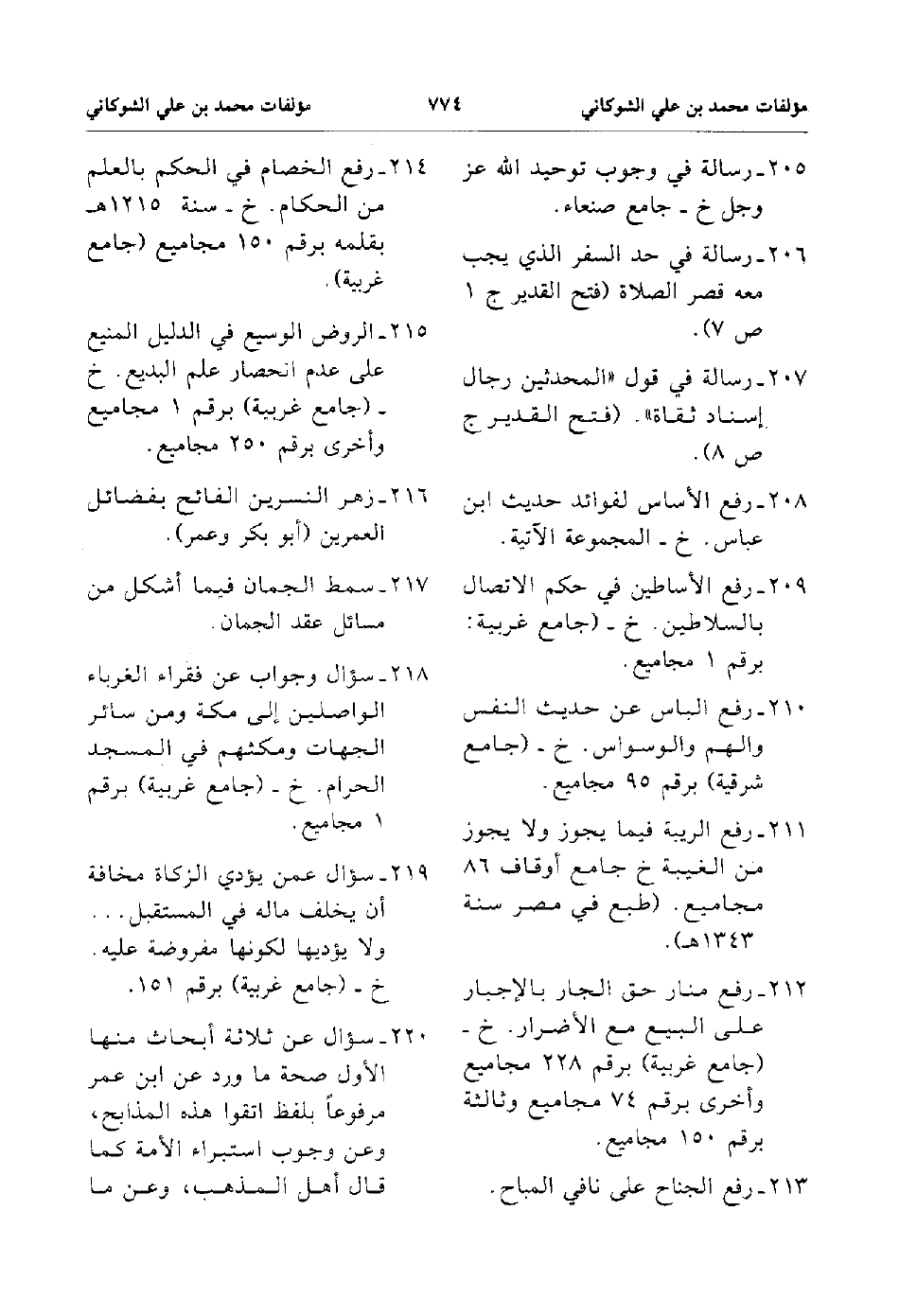 214. رفع الخصام في الحكم بالعلم من الحكام خ سنة 1215هـ بقلمه برقم 150 مجاميع جامع غربية.