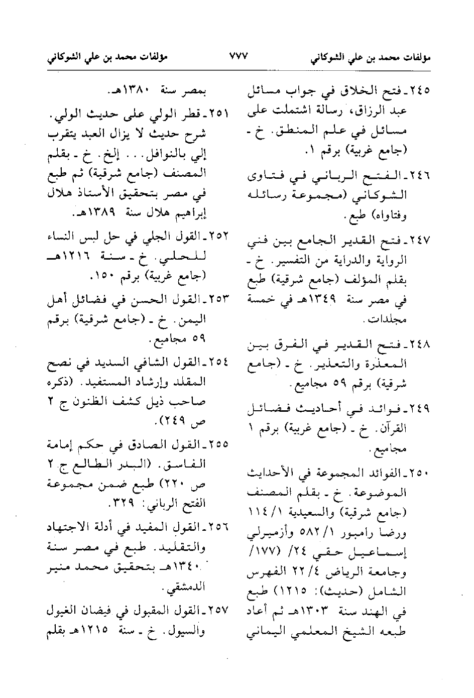 247. فتح القدير الجامع بين فني الرواية والدراية من التفسير خ بقلم المؤلف جامع شرقية طبع في مصر سنة 1349هـ في خمسة مجلدات .
