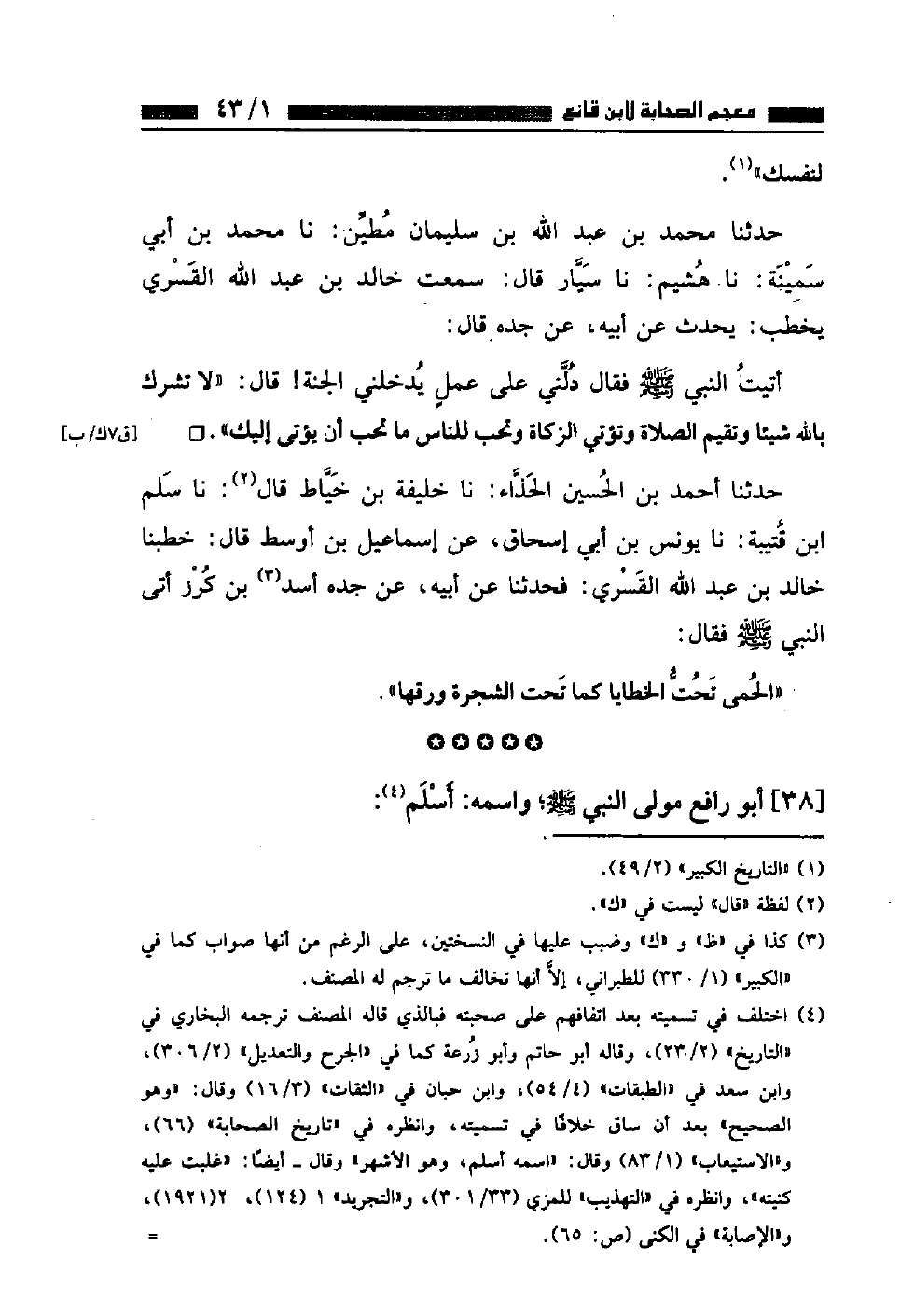 كتاب معجم الصحابة لابن قانع (اسم الجزء: 1)