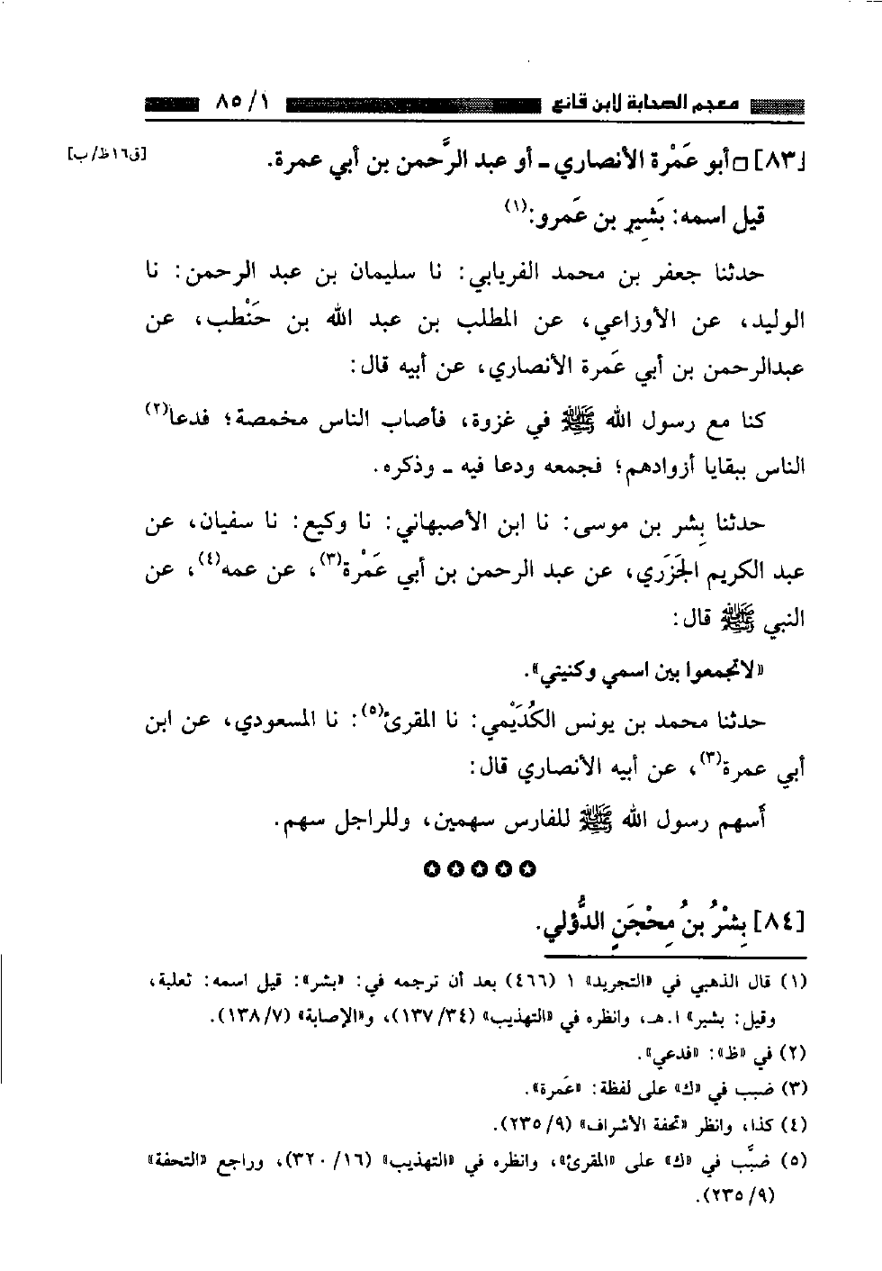 كتاب معجم الصحابة لابن قانع (اسم الجزء: 1)