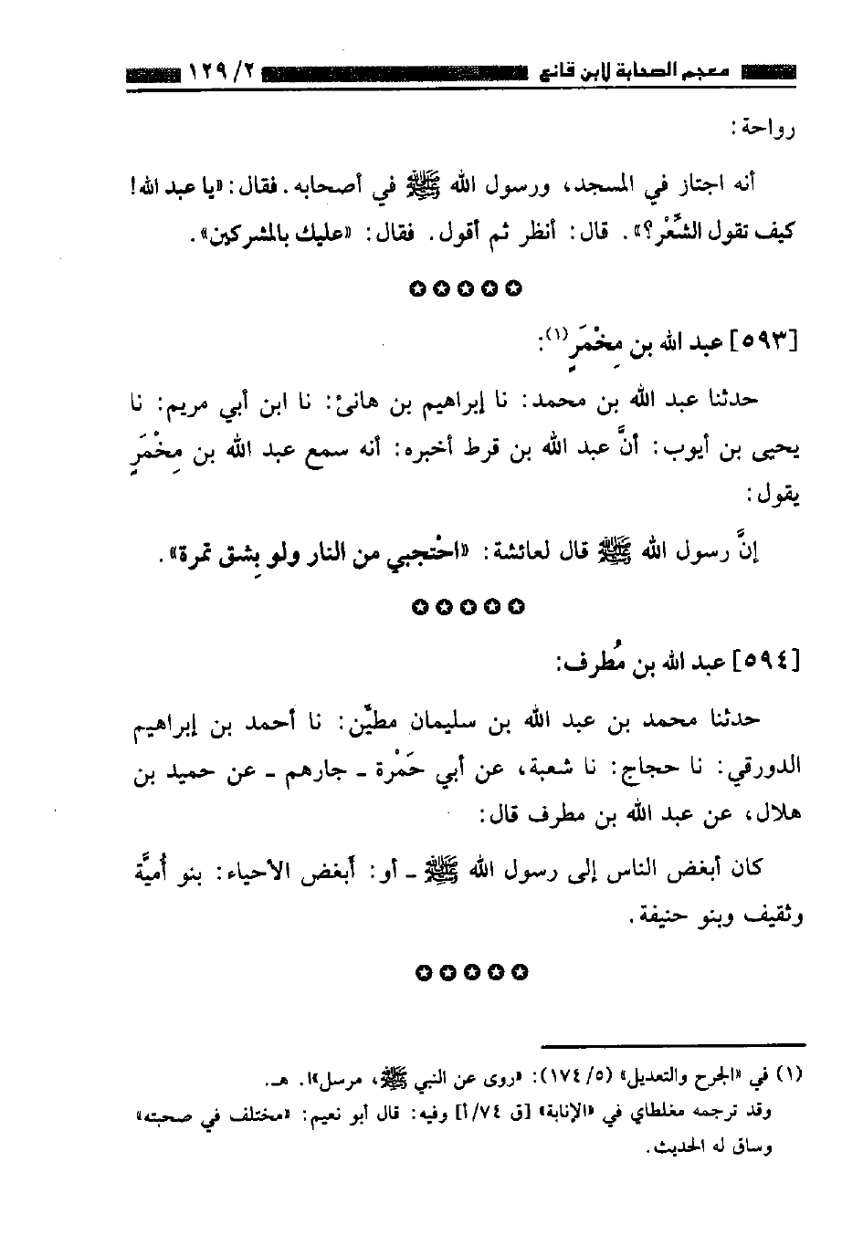 ٥٩٤ - عَبْدُ اللَّهِ بْنُ مُطَرِّفٍ