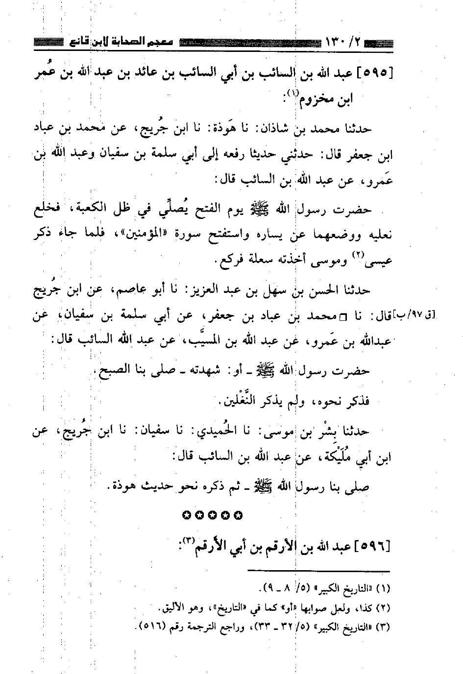 ٥٩٥ - عَبْدُ اللَّهِ بْنُ السَّائِبِ بْنِ أَبِي السَّائِبِ بْنِ عَائِدِ بْنِ عَبْدِ اللَّهِ بْنِ عُمَرَ بْنِ مَخْزُومٍ