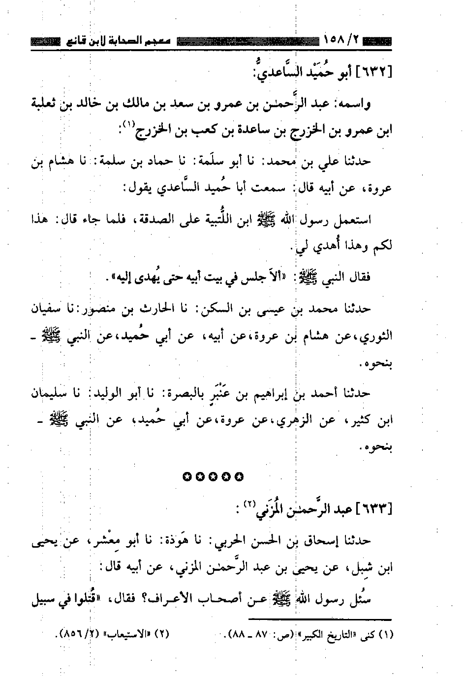٦٣٢ - أَبُو حُمَيْدٍ السَّاعِدِيُّ وَاسْمُهُ: عَبْدُ الرَّحْمَنِ بْنُ عَمْرِو بْنِ سَعْدِ بْنِ مَالِكِ بْنِ خَالِدِ بْنِ ثَعْلَبَةَ بْنِ عَمْرِو بْنِ الْخَزْرَجِ بْنِ سَاعِدَةَ بْنَ كَعْبِ بْنِ الْخَزْرَجِ