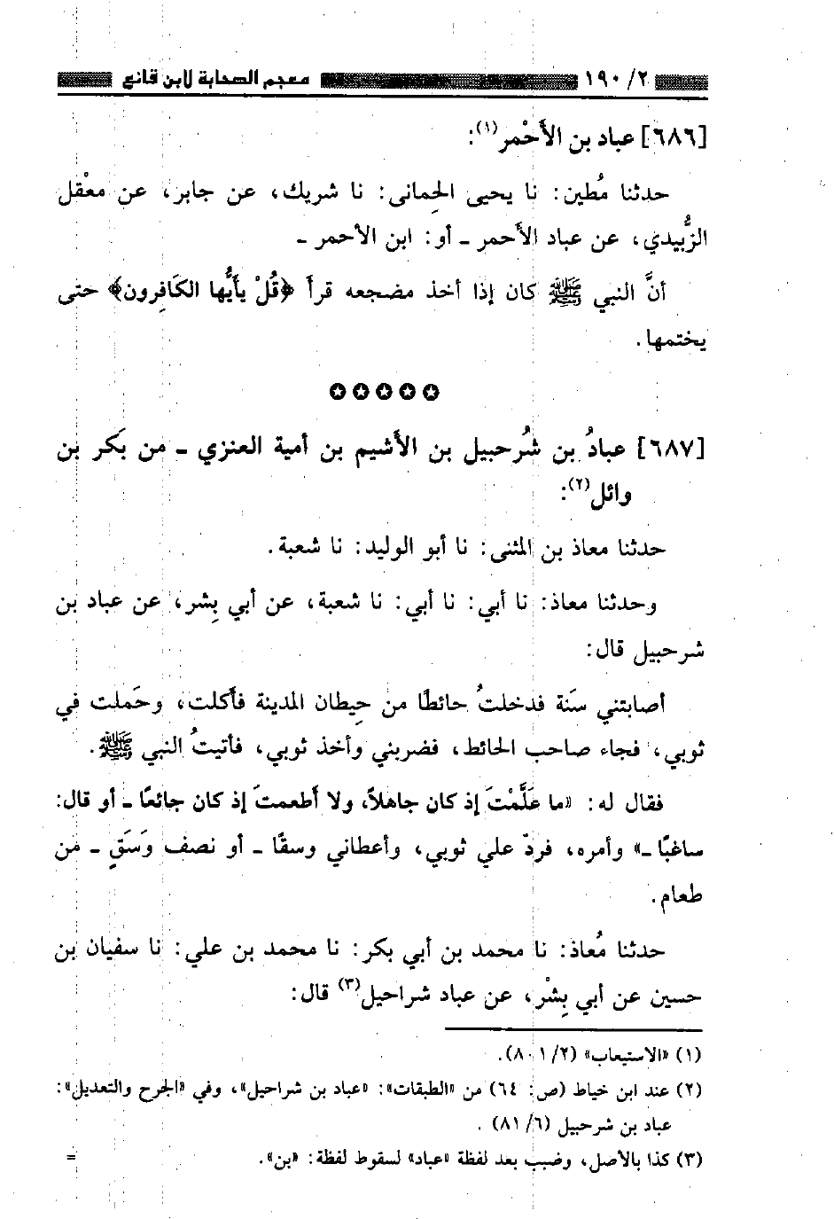 ٦٨٧ - عَبَّادُ بْنُ شُرَحْبِيلَ بْنِ الْأَشْيَمِ بْنِ أُمَيَّةَ الْعَنَزِيُّ مِنْ بَكْرِ بْنِ وَائِلٍ