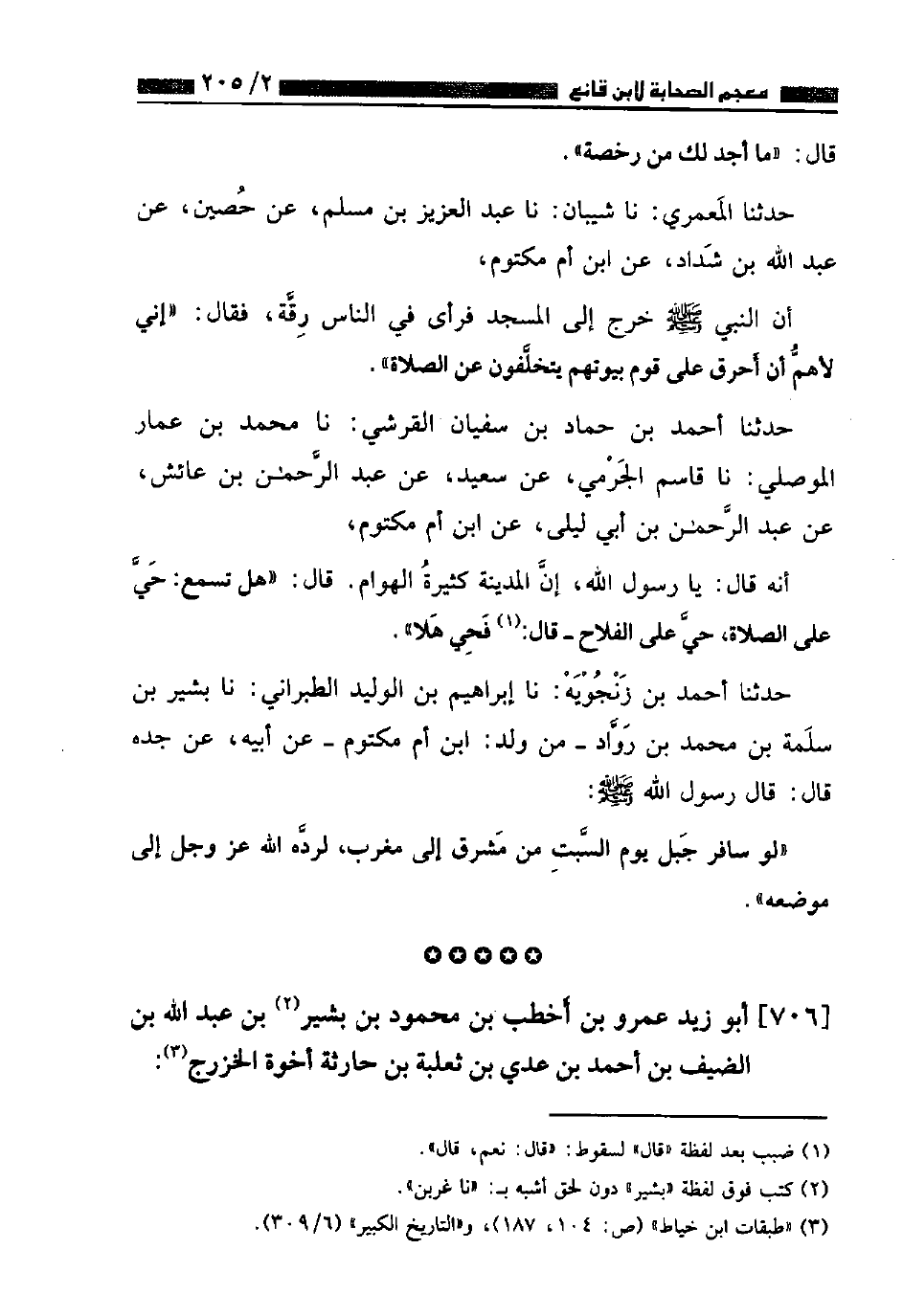 ٧٠٦ - أَبُو زَيْدٍ عَمْرُو بْنُ أَخْطَبَ بْنِ مَحْمُودِ بْنِ بَشِيرِ بْنِ عَبْدِ اللَّهِ بْنِ الضَّيْفِ بْنِ أَحْمَدَ بْنِ عَدِيِّ بْنِ ثَعْلَبَةَ بْنِ حَارِثَةَ أُخُوَّةُ الْخَزْرَجِ