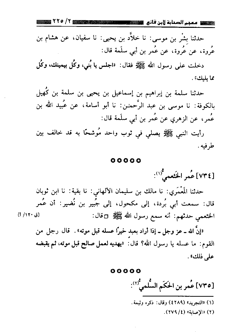 ٧٣٥ - عُمَرُ بْنُ الْحَكَمِ السُّلَمِيُّ
