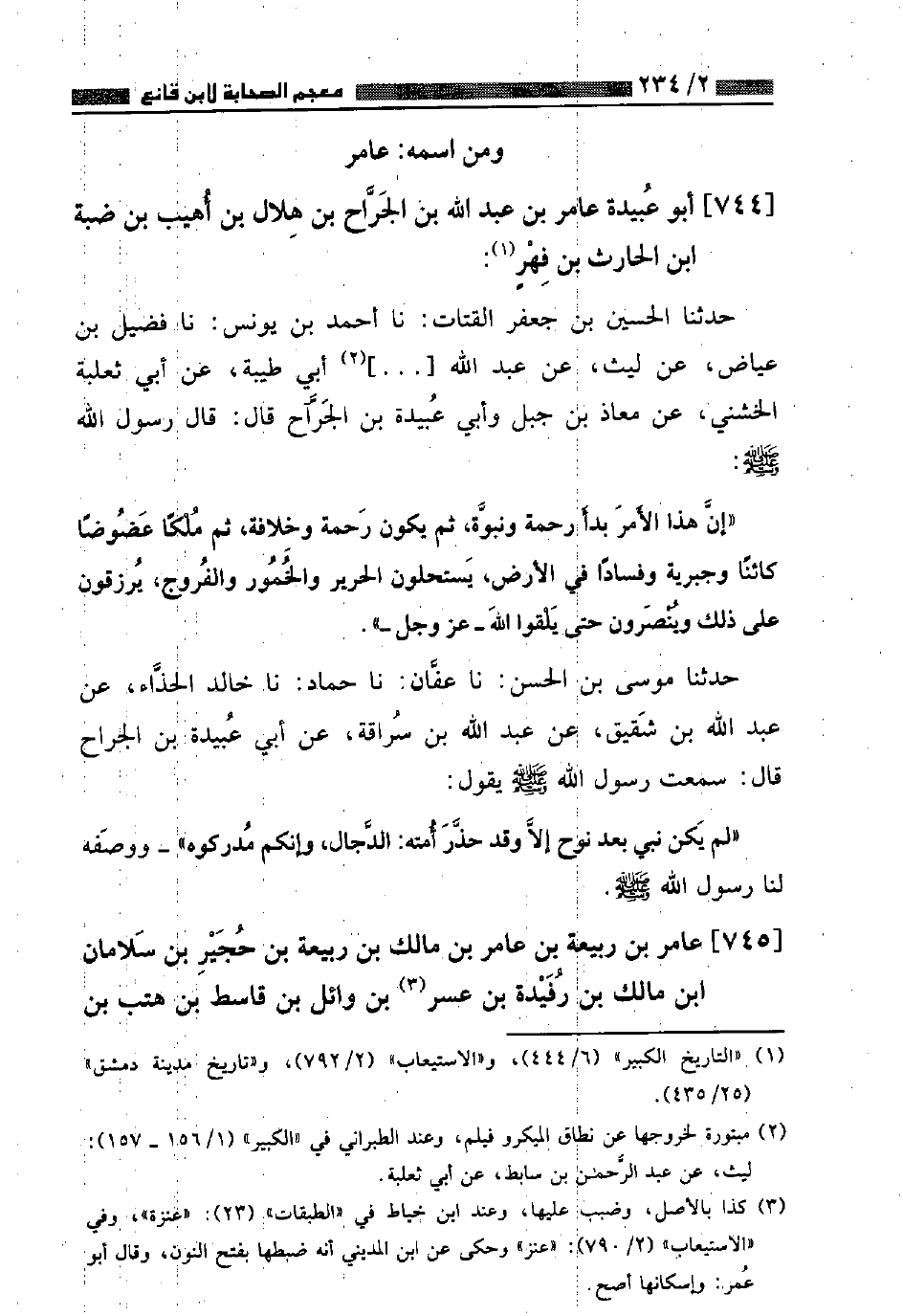 ٧٤٤ - أَبُو عُبَيْدَةَ عَامِرُ بْنُ عَبْدِ اللَّهِ بْنِ الْجَرَّاحِ بْنِ هِلَالِ بْنِ أُهَيْبِ بْنِ ضَبَّةَ بْنِ الْحَارِثِ بْنِ فِهْرٍ