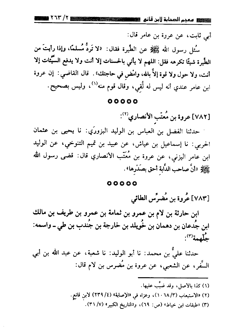 ٧٨٣ - عُرْوَةُ بْنُ مُضَرِّسٍ الطَّائِيُّ ابْنِ حَارِثَةَ بْنِ لَامِ بْنِ عَمْرِو بْنِ ثُمَامَةَ بْنِ عَمْرِو بْنِ طَرِيفِ بْنِ مَالِكِ بْنِ جُدْعَانَ بْنِ دُهْمَانَ بْنِ خُوَيْلِدِ بْنِ خَارِجَةَ بْنِ جُنْدُبِ بْنِ طَيٍّ , وَاسْمُهُ جُلْهُمَةُ