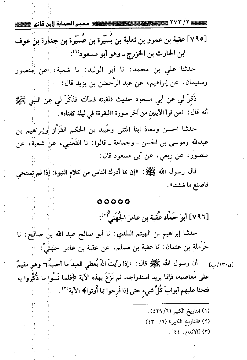 ٧٩٦ - أَبُو حَمَّادٍ عُقْبَةُ بْنُ عَامِرٍ الْجُهَنِيُّ