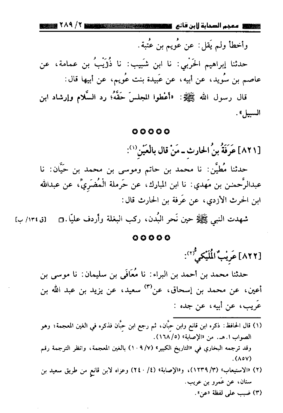 ٨٢١ - عَرَفَةُ بْنُ الْحَارِثِ مَنْ قَالَ بِالْعَيْنِ