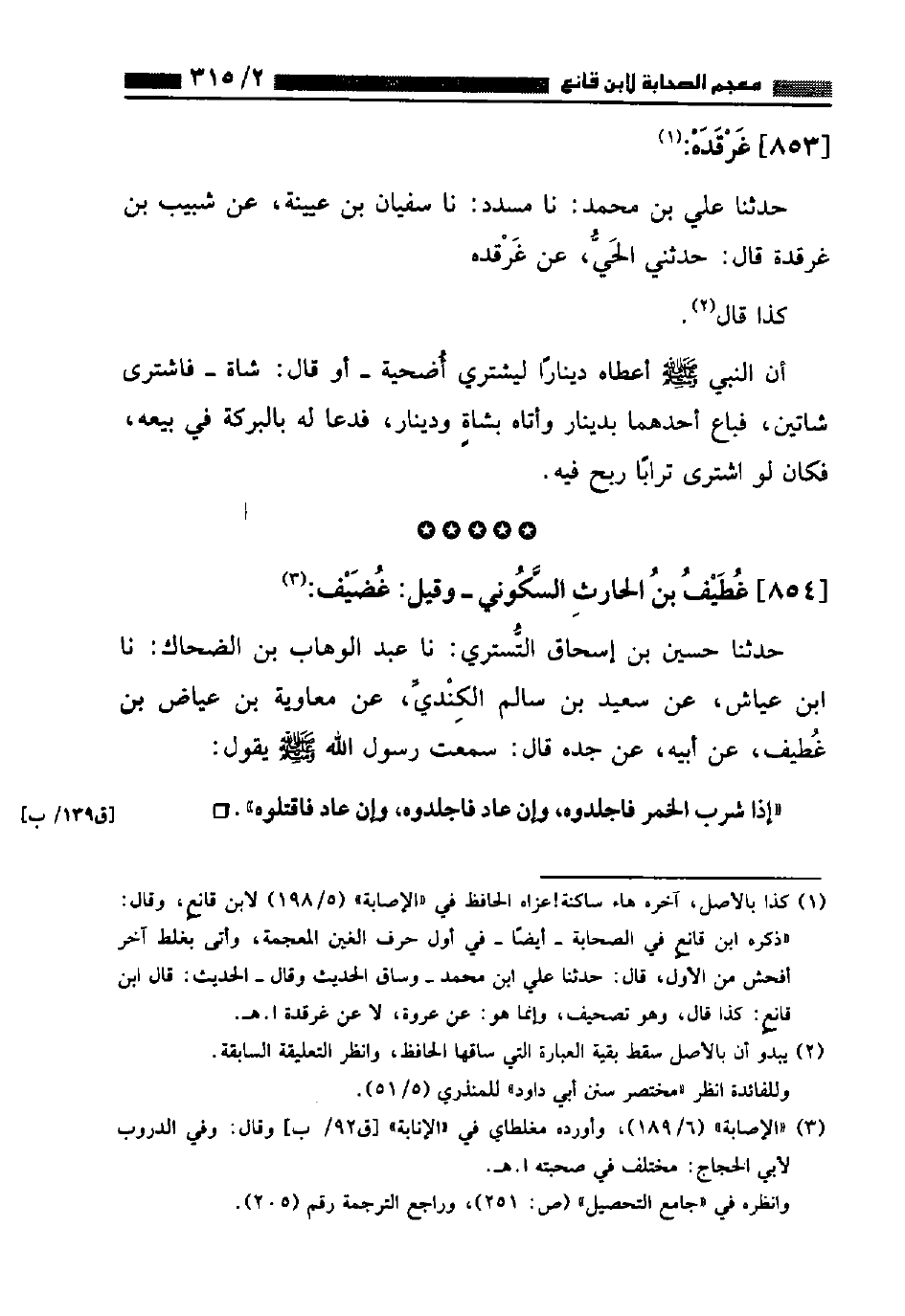 ٨٥٤ - غُطَيْفُ بْنُ الْحَارِثِ السَّكُونِيُّ وَقِيلَ: غُضَيْفٌ