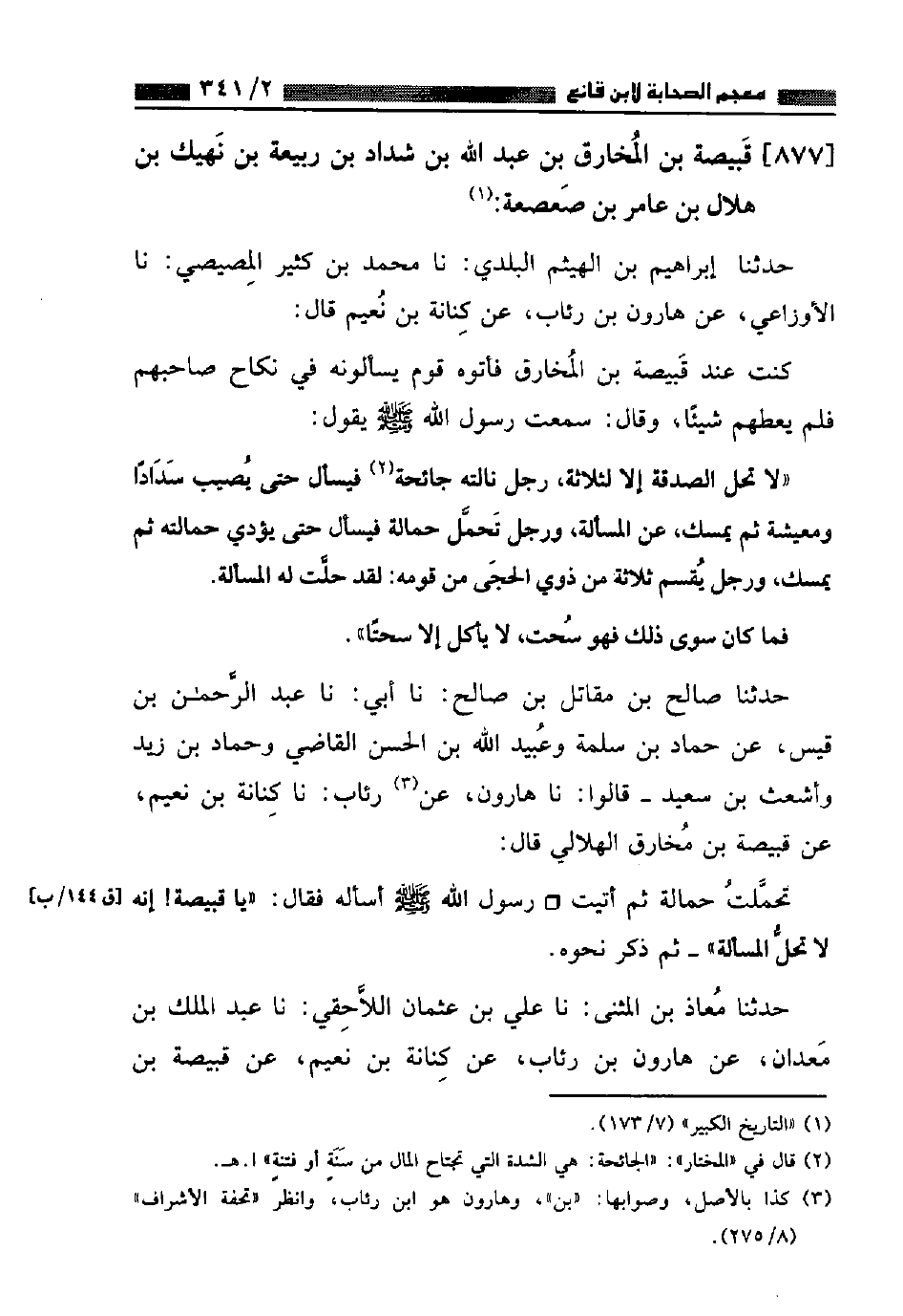 ٨٧٧ - قَبِيصَةُ بْنُ الْمُخَارِقِ بْنِ عَبْدِ اللَّهِ بْنِ شَدَّادِ بْنِ رَبِيعَةَ بْنِ نَهِيكِ بْنِ هِلَالِ بْنِ عَامِرِ بْنِ صَعْصَعَةَ