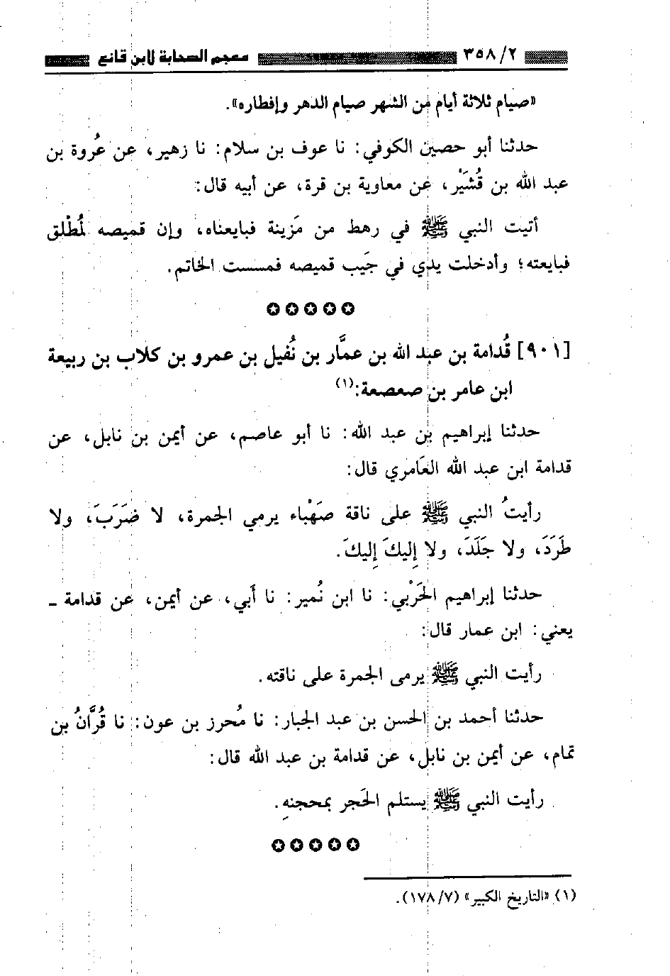 ٩٠١ - قُدَامَةُ بْنُ عَبْدِ اللَّهِ بْنِ عَمَّارِ بْنِ نُفَيْلِ بْنِ عَمْرِو بْنِ كِلَابِ بْنِ رَبِيعَةَ بْنِ عَامِرِ بْنِ صَعْصَعَةَ