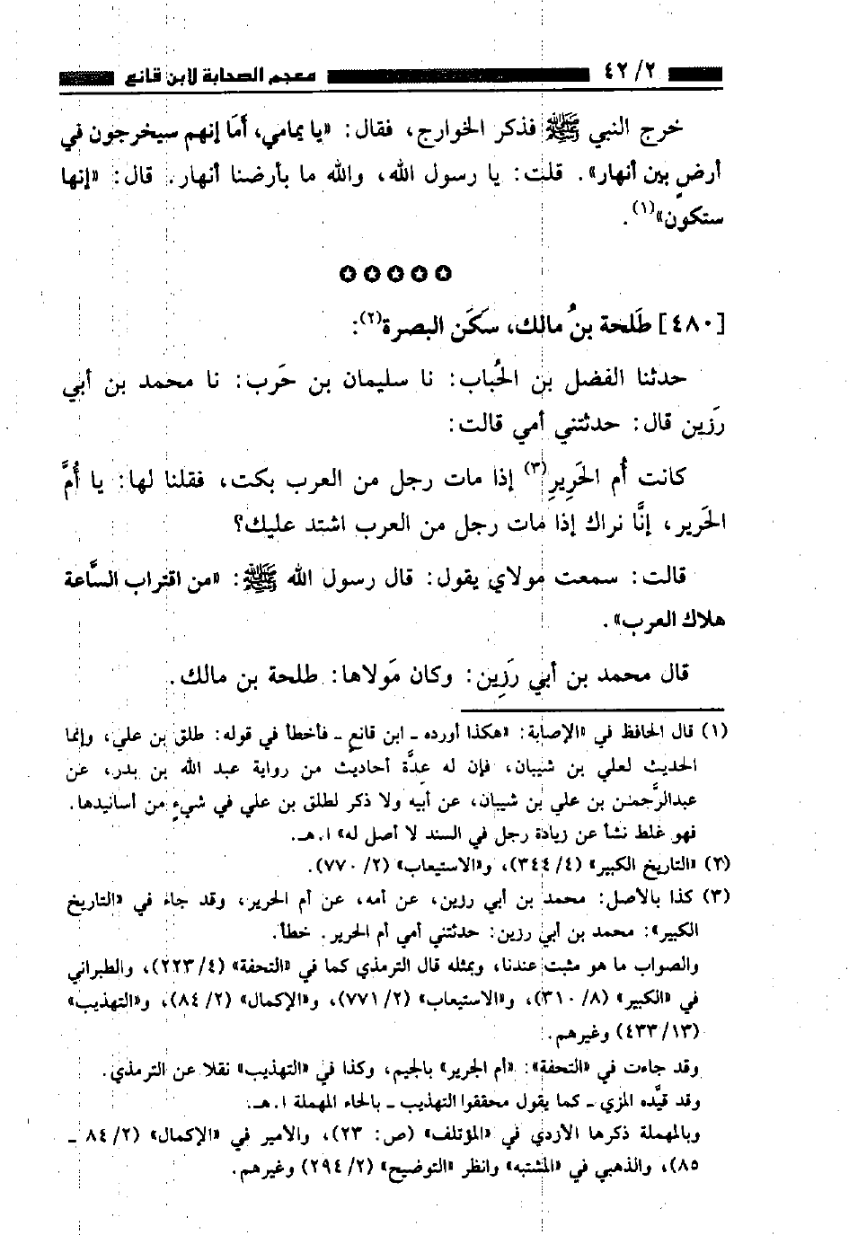 ٤٨٠ - طَلْحَةُ بْنُ مَالِكٍ سَكَنَ الْبَصْرَةَ
