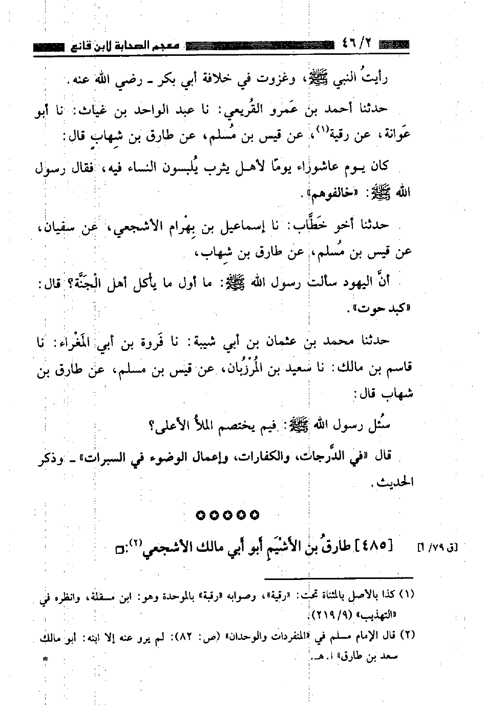 ٤٨٥ - طَارِقُ بْنُ الْأَشْيَمِ أَبُو أَبِي مَالِكٍ الْأَشْجَعِيُّ