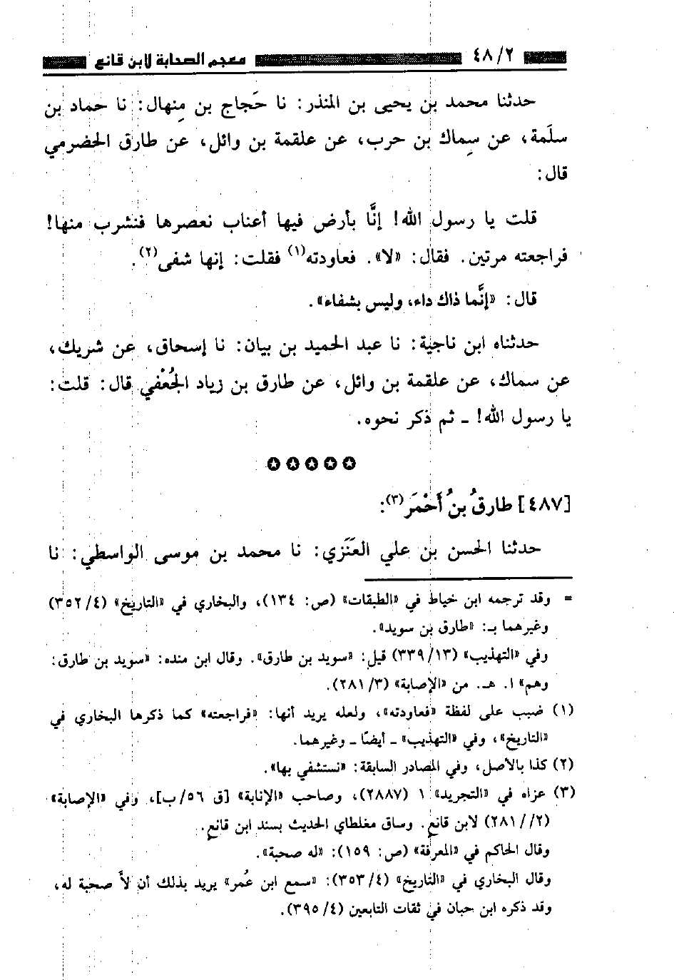 ٤٨٧ - طَارِقُ بْنُ أَحْمَرَ