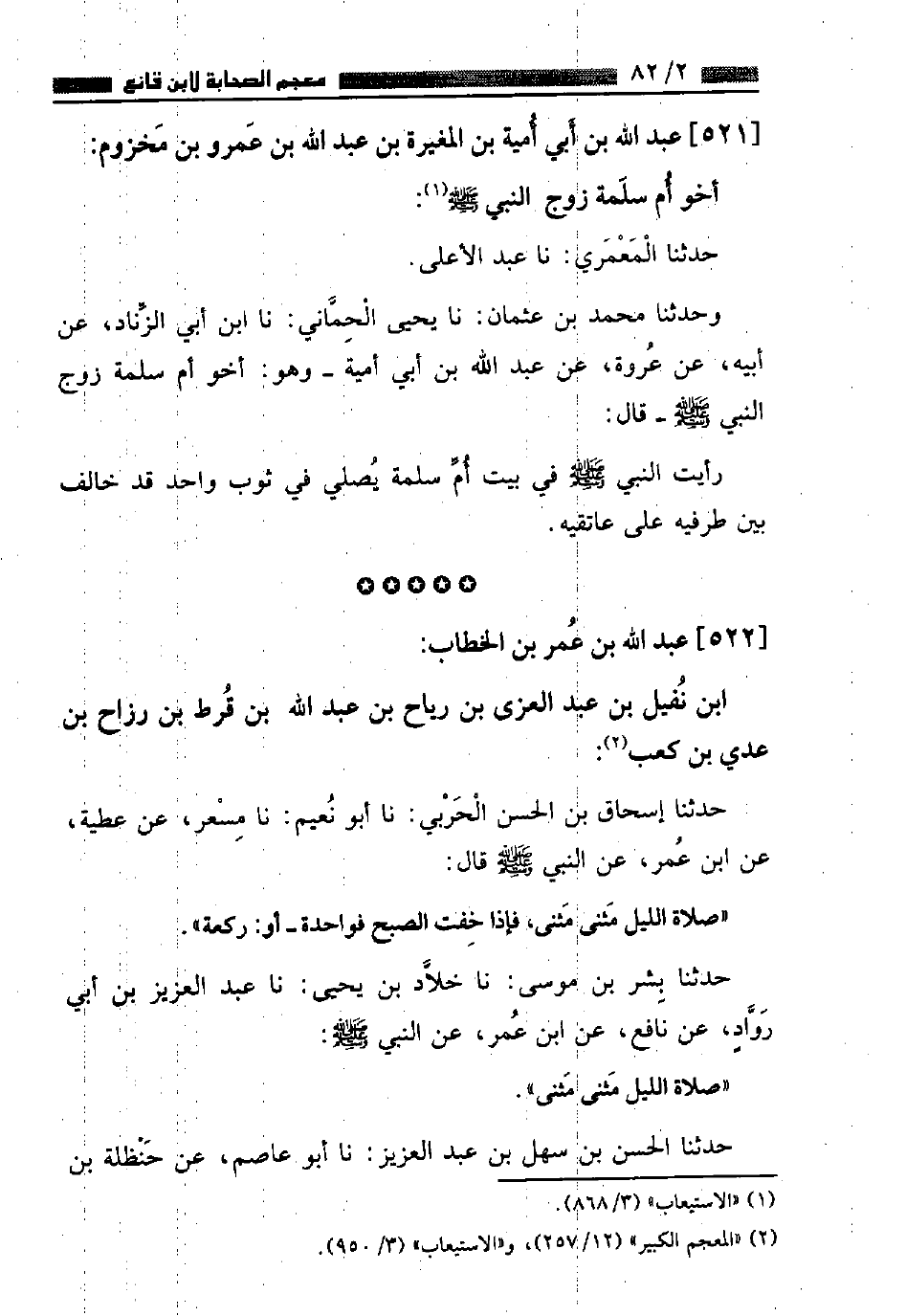 ٥٢٢ - عَبْدُ اللَّهِ بْنُ عُمَرَ بْنِ الْخَطَّابِ بْنِ نُفَيْلِ بْنِ عَبْدِ الْعُزَّى بْنِ رِيَاحِ بْنِ عَبْدِ اللَّهِ بْنِ قُرْطِ بْنِ رَزَاحِ بْنِ عَدِيِّ بْنِ كَعْبٍ