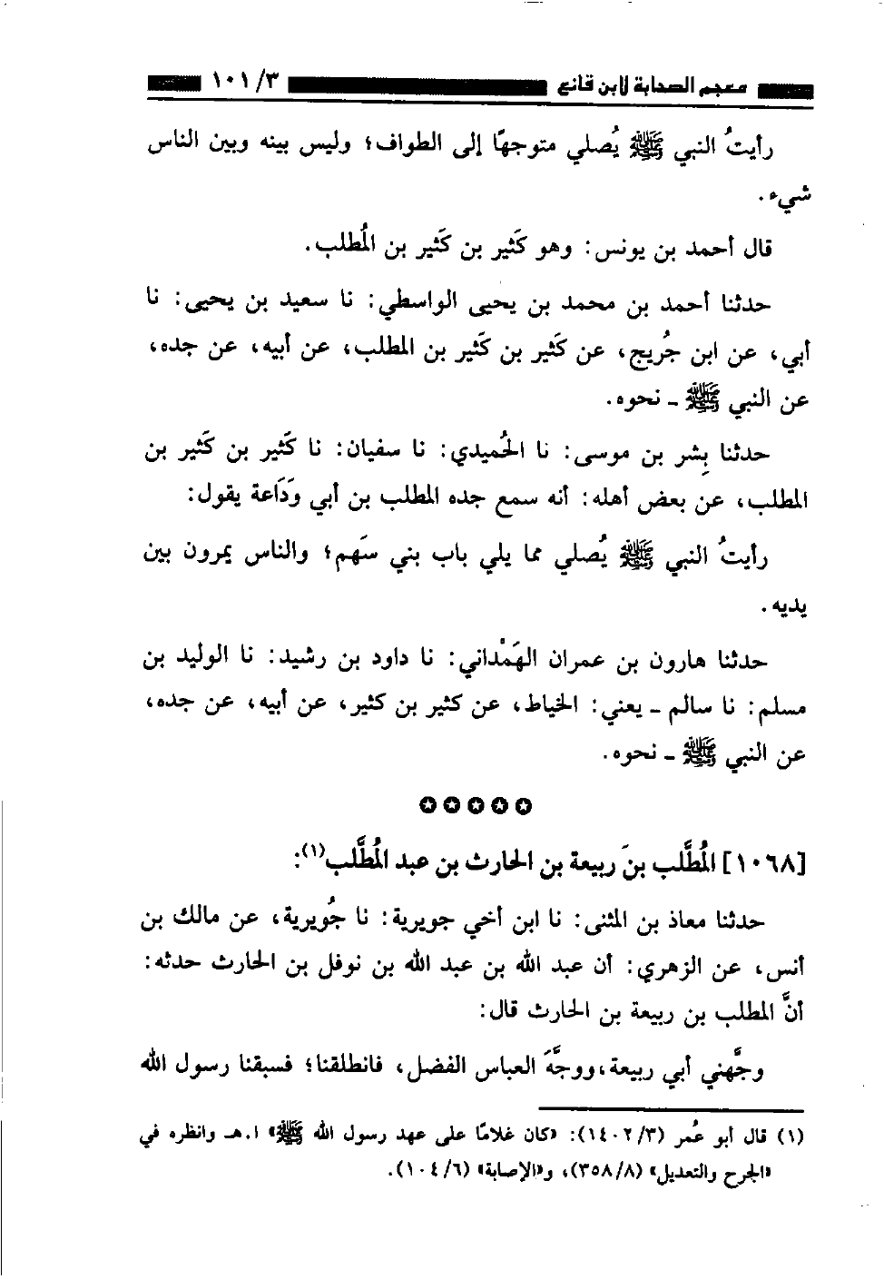 ١٠٦٨ - الْمُطَّلِبُ بْنُ رَبِيعَةَ بْنِ الْحَارِثِ بْنِ عَبْدِ الْمُطَّلِبِ
