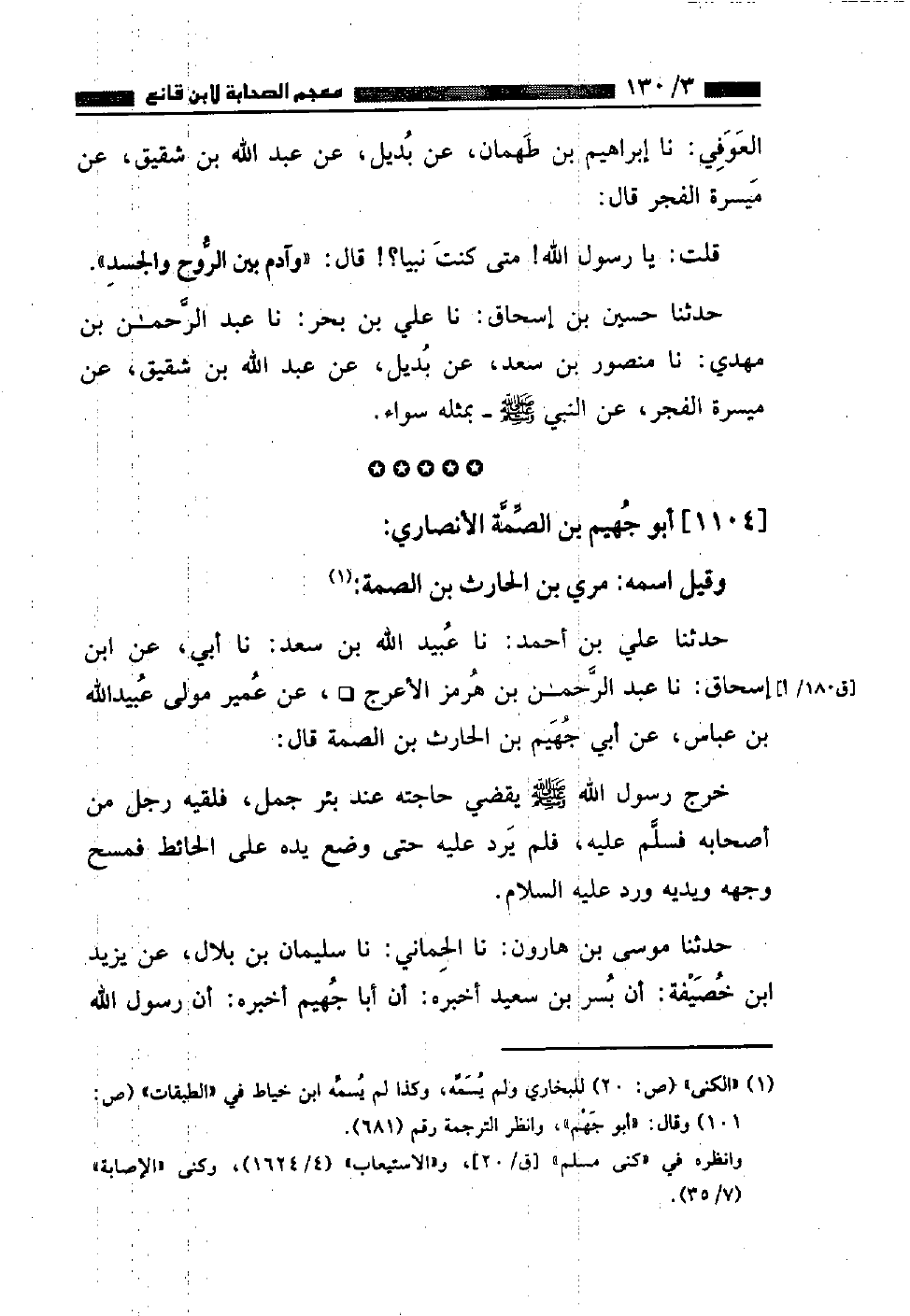 ١١٠٤ - أَبُو جُهَيْمِ بْنُ الصِّمَّةِ الْأَنْصَارِيُّ وَقِيلَ اسْمُهُ مُرِّيُّ بْنُ الْحَارِثِ بْنِ الصِّمَّةِ