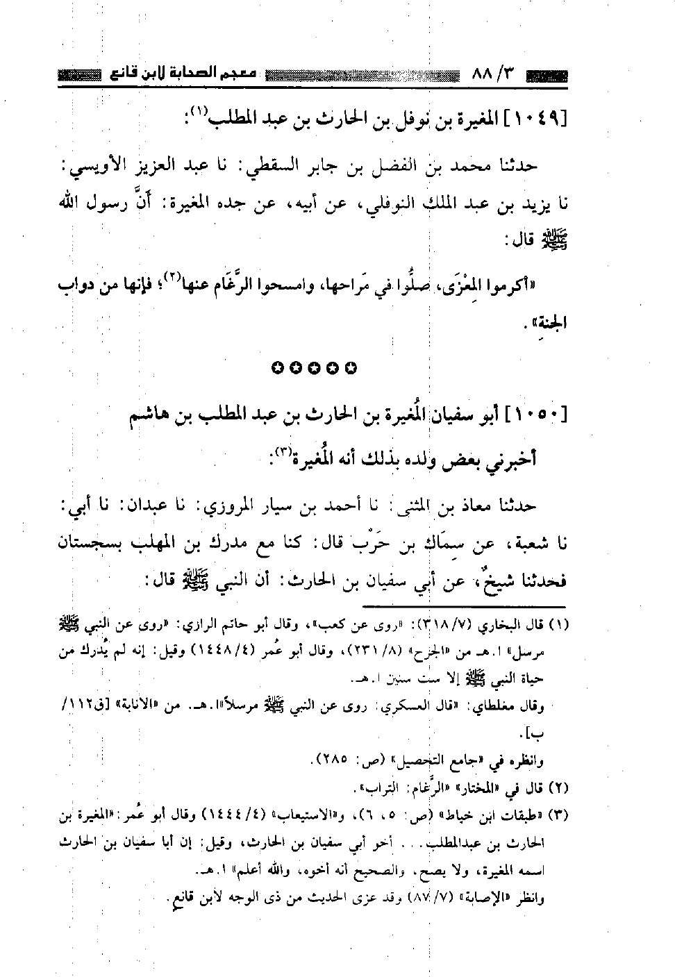 ١٠٥٠ - أَبُو سُفْيَانَ الْمُغِيرَةُ بْنُ الْحَارِثِ بْنِ عَبْدِ الْمُطَّلِبِ بْنِ هَاشِمٍ أَخْبَرَنِي بَعْضُ وَلَدِهِ بِذَلِكَ أَنَّهُ الْمُغِيرَةُ