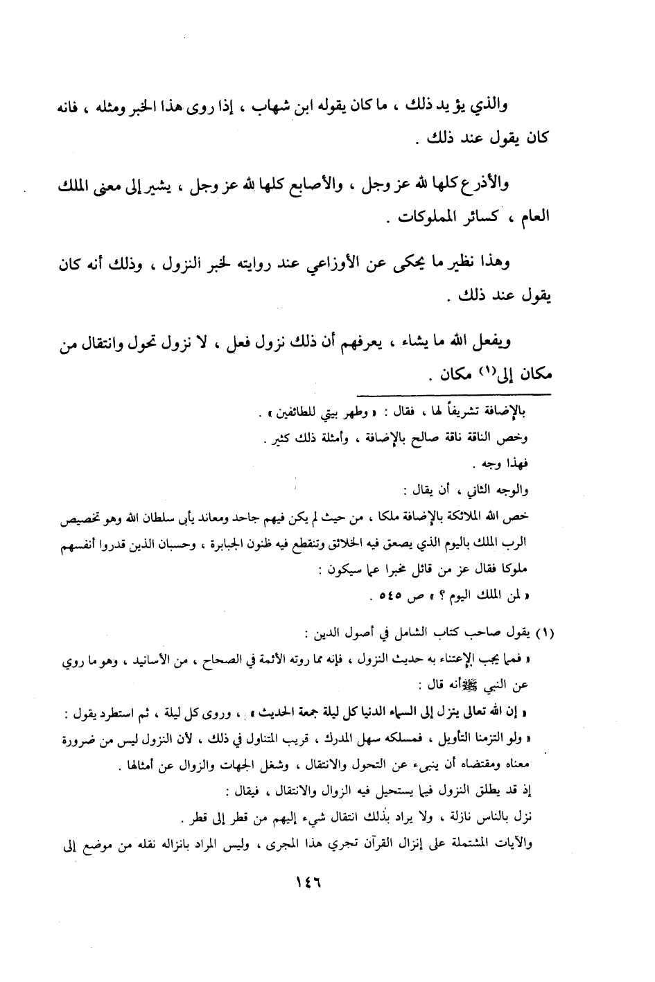 وَهَذَا نَظِير مَا يحْكى عَن الْأَوْزَاعِيّ عِنْد رِوَايَته لخَبر النُّزُول وَذَلِكَ أَنه كَانَ يَقُول عِنْد ذَلِك
