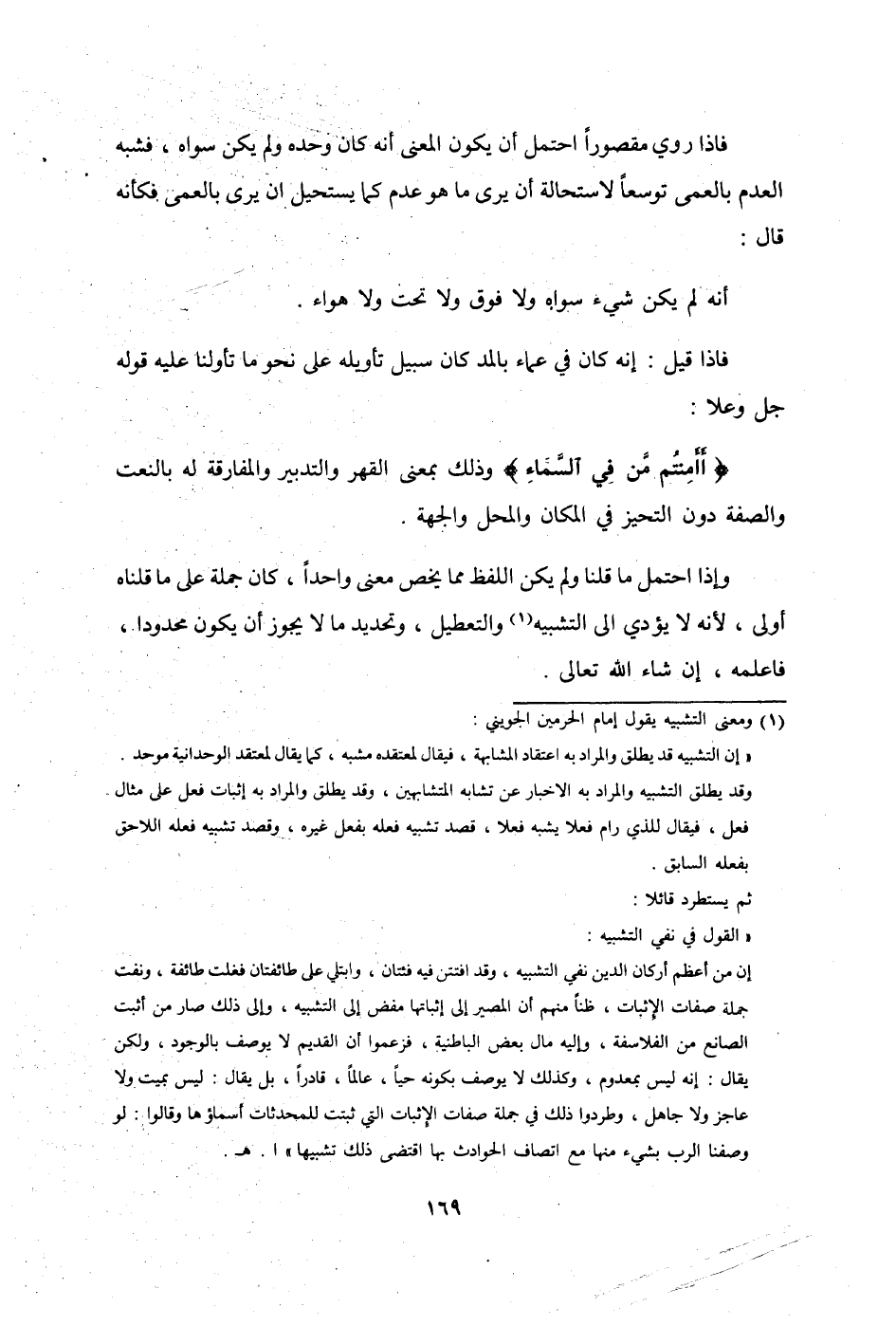 وَإِذا احْتمل مَا قُلْنَا وَلم يكن اللَّفْظ مِمَّا يخص معنى وَاحِدًا كَانَ جملَة على مَا قُلْنَاهُ أولى لِأَنَّهُ لَا يُؤَدِّي إِلَى التَّشْبِيه والتعطيل وتحديد مَا لَا يجوز أَن يكون محدودا فاعلمه إِن شَاءَ الله تَعَالَى