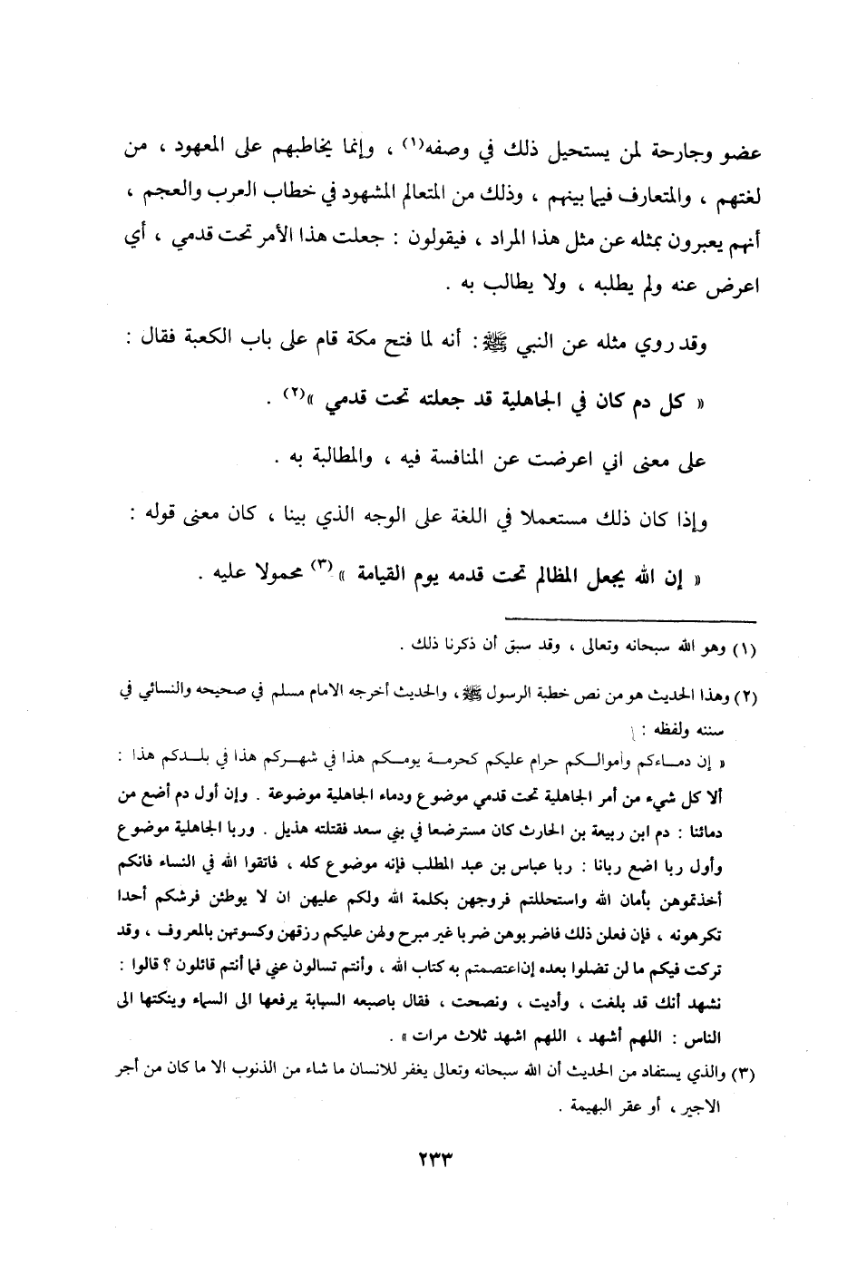كل دم كَانَ فِي الْجَاهِلِيَّة قد جعلته تَحت قدمي // أخرجه مُسلم //