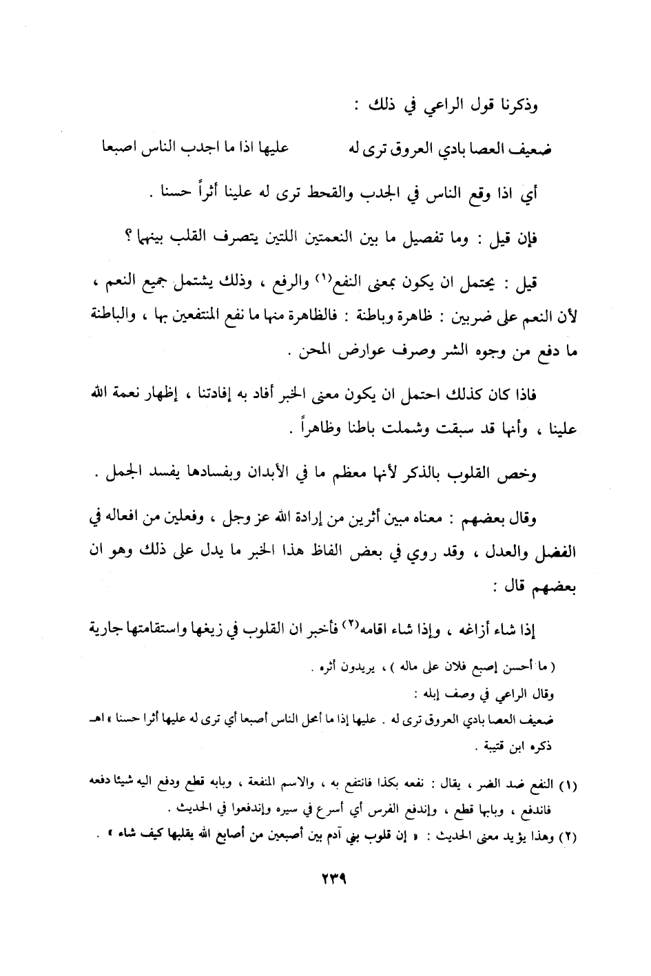 فَإِن قيل وَمَا تَفْصِيل مَا بَين النعمتين اللَّتَيْنِ يتَصَرَّف الْقلب بَينهمَا د