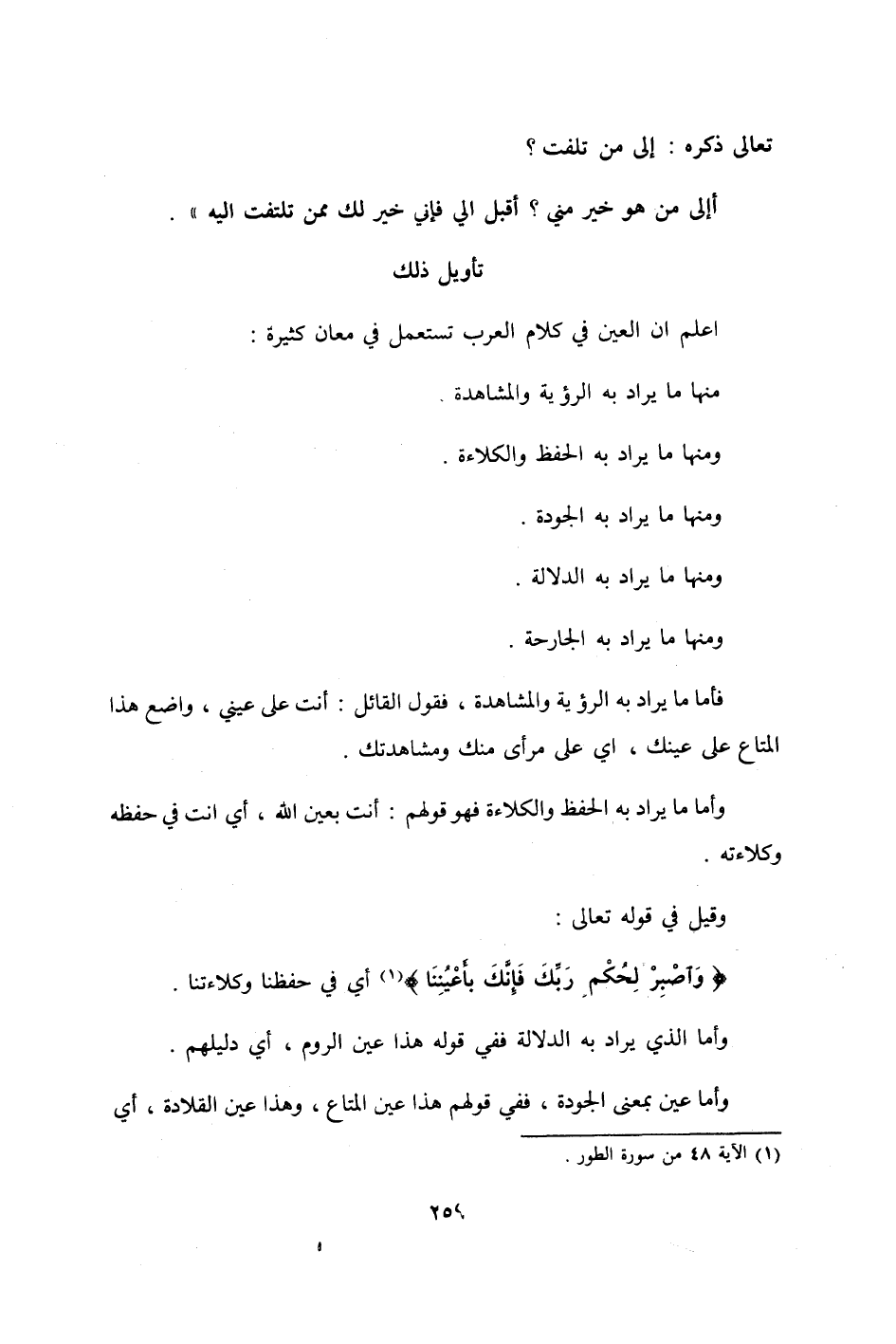 أعلم أَن الْعين فِي كَلَام الْعَرَب تسْتَعْمل فِي معَان كَثِيرَة