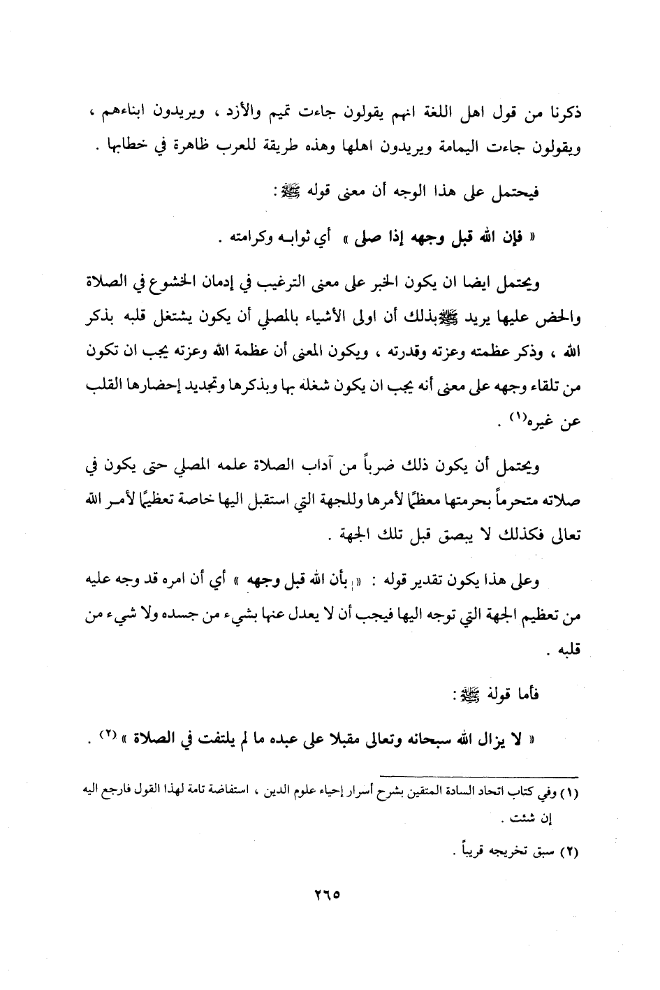 وعَلى هَذَا يكون تَقْدِير قَوْله بِأَن الله قبل وَجهه أَي أَن أمره قد وَجه عَلَيْهِ من تَعْظِيم الْجِهَة الَّتِي توجه إِلَيْهَا فَيجب أَن لَا يعدل عَنْهَا بِشَيْء من جسده وَلَا شَيْء من قلبه