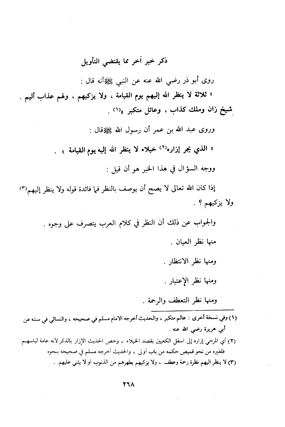 ثَلَاثَة لَا در الله إِلَيْهِ يَوْم الْقِيَامَة وَلَا يزكيهم وَلَهُم عَذَاب أَلِيم شيخ زَان وَملك كَذَّاب وعائل متكبر // أخرجه الْأَمَام مُسلم //