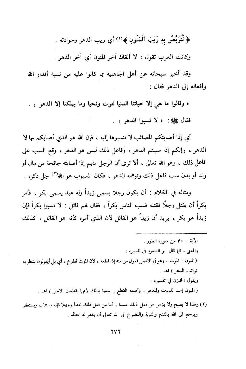 وَقد أخبر سُبْحَانَهُ عَن أهل الْجَاهِلِيَّة بِمَا كَانُوا عَلَيْهِ من نِسْبَة أقدار الله وأفعاله إِلَى الدَّهْر فَقَالَ
