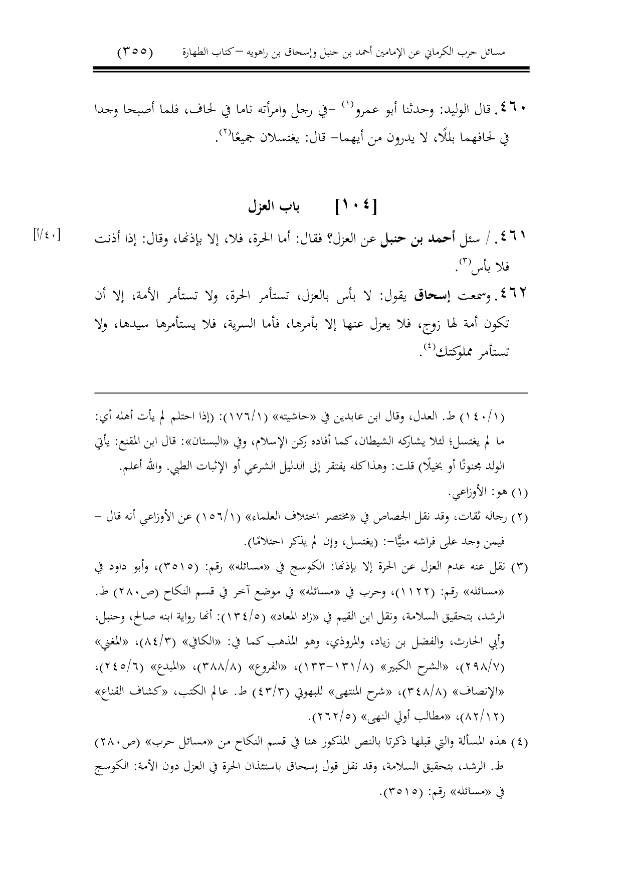 كتاب مسائل حرب الكرماني كتاب الطهارة - ت عامر بهجت