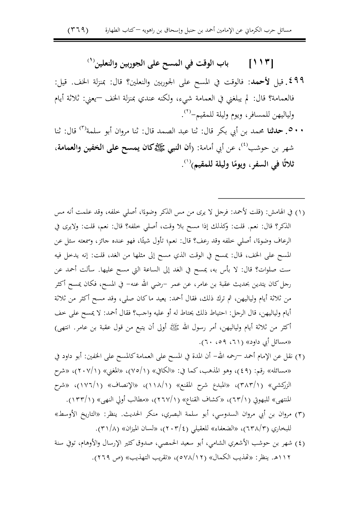 كتاب مسائل حرب الكرماني كتاب الطهارة - ت عامر بهجت