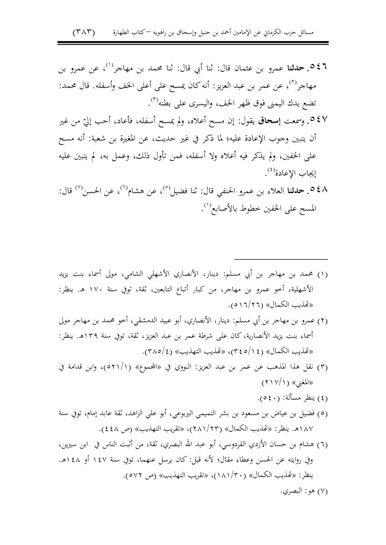 كتاب مسائل حرب الكرماني كتاب الطهارة - ت عامر بهجت