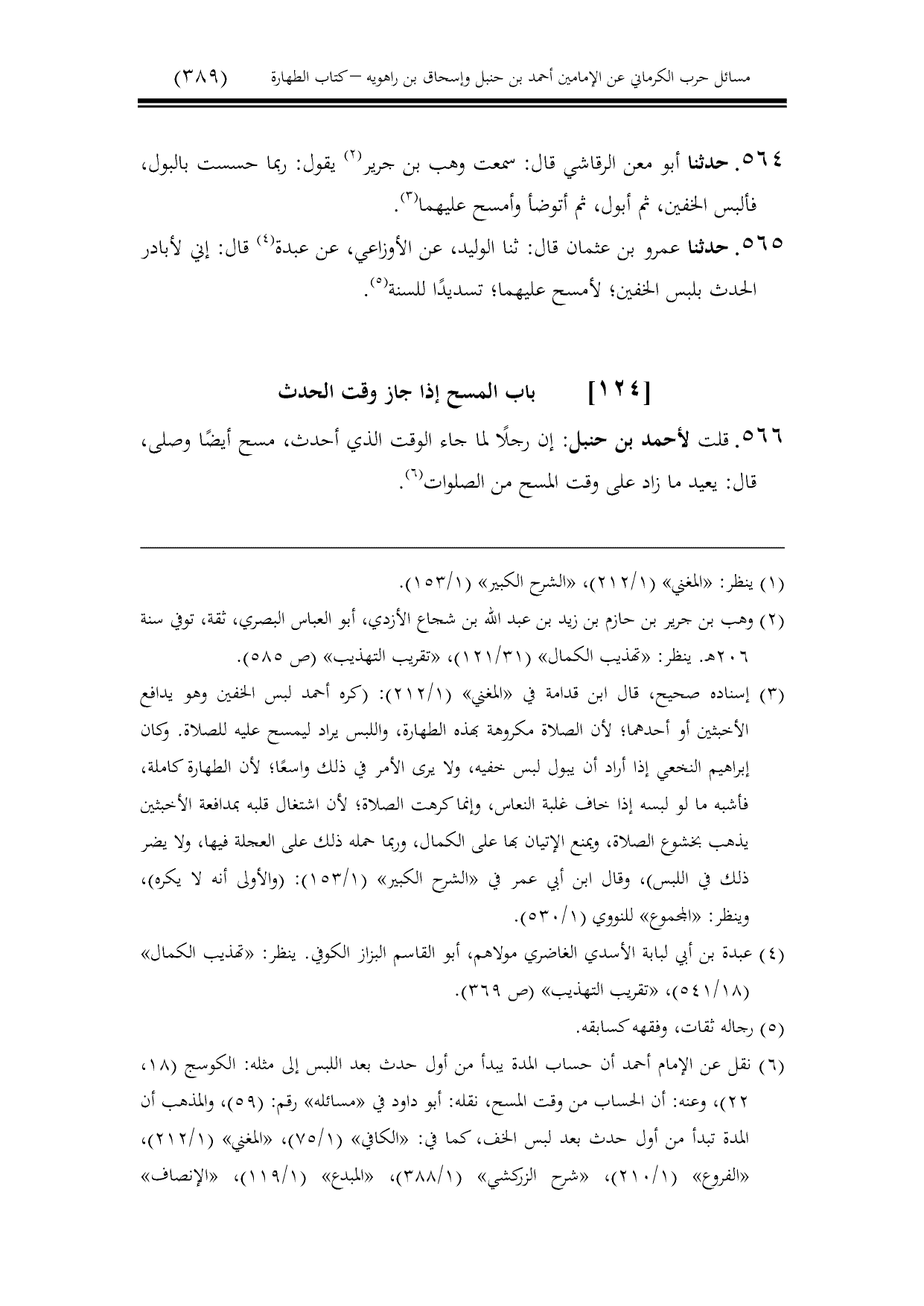 كتاب مسائل حرب الكرماني كتاب الطهارة - ت عامر بهجت