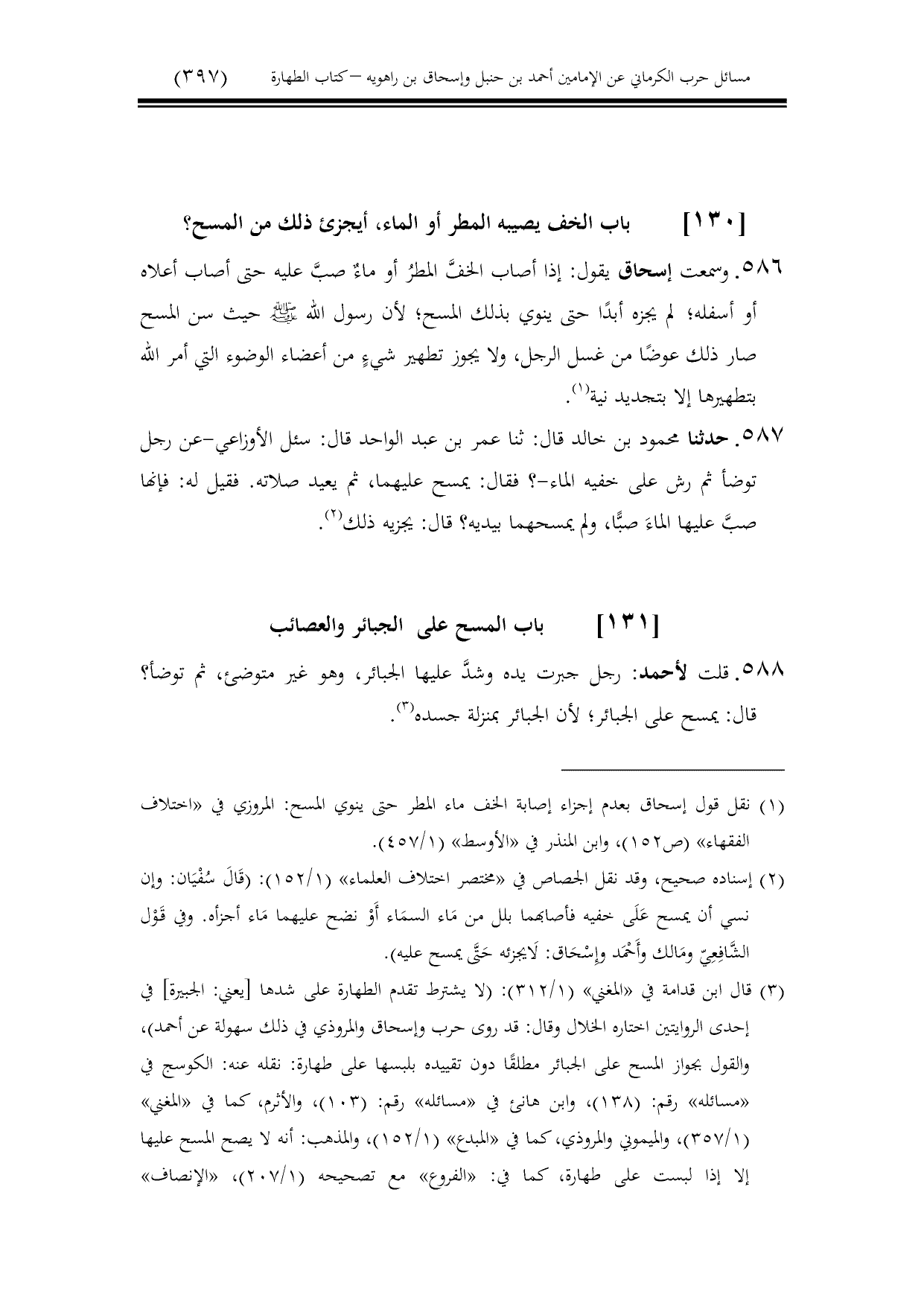 كتاب مسائل حرب الكرماني كتاب الطهارة - ت عامر بهجت