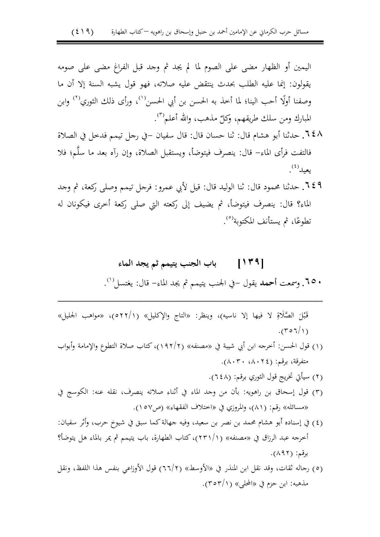 كتاب مسائل حرب الكرماني كتاب الطهارة - ت عامر بهجت