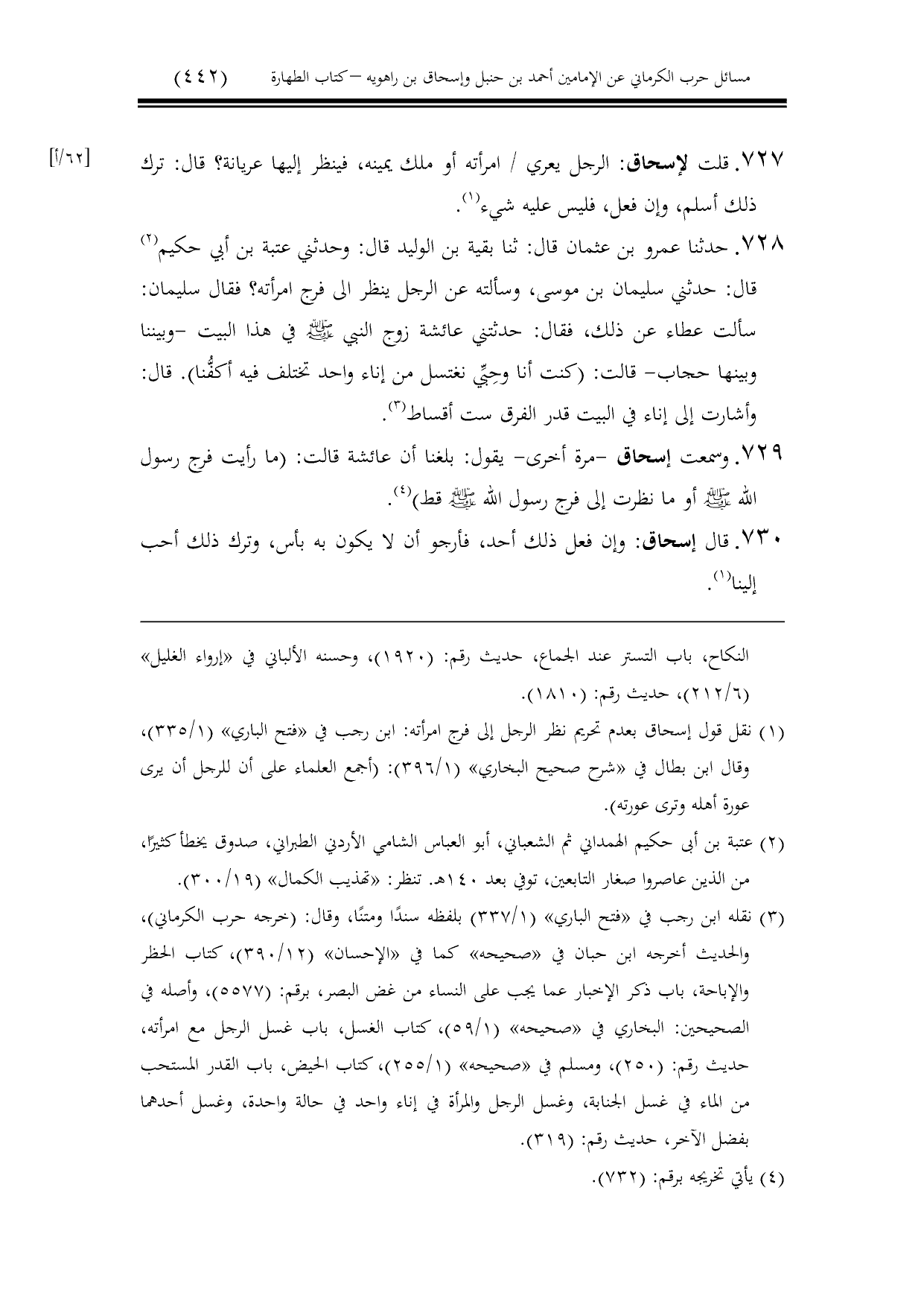 كتاب مسائل حرب الكرماني كتاب الطهارة - ت عامر بهجت