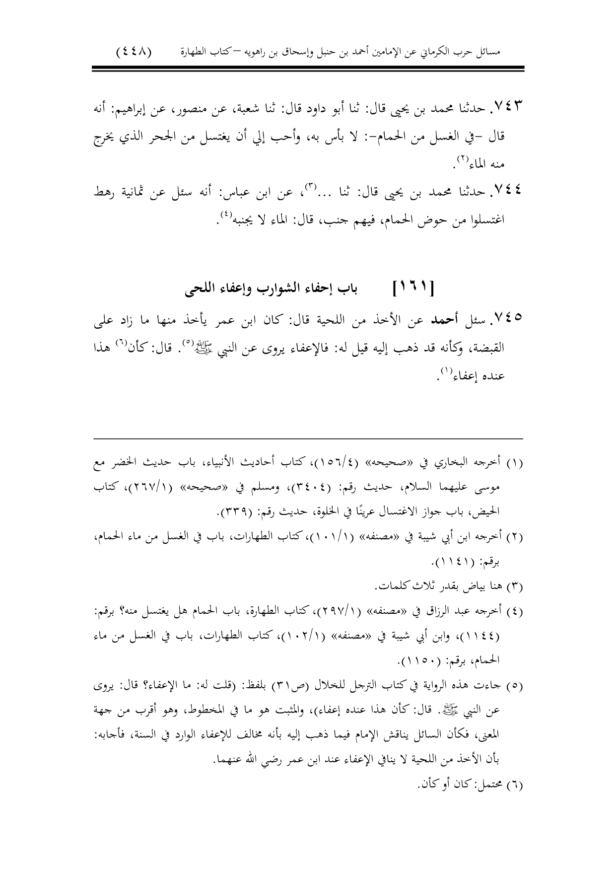 كتاب مسائل حرب الكرماني كتاب الطهارة - ت عامر بهجت